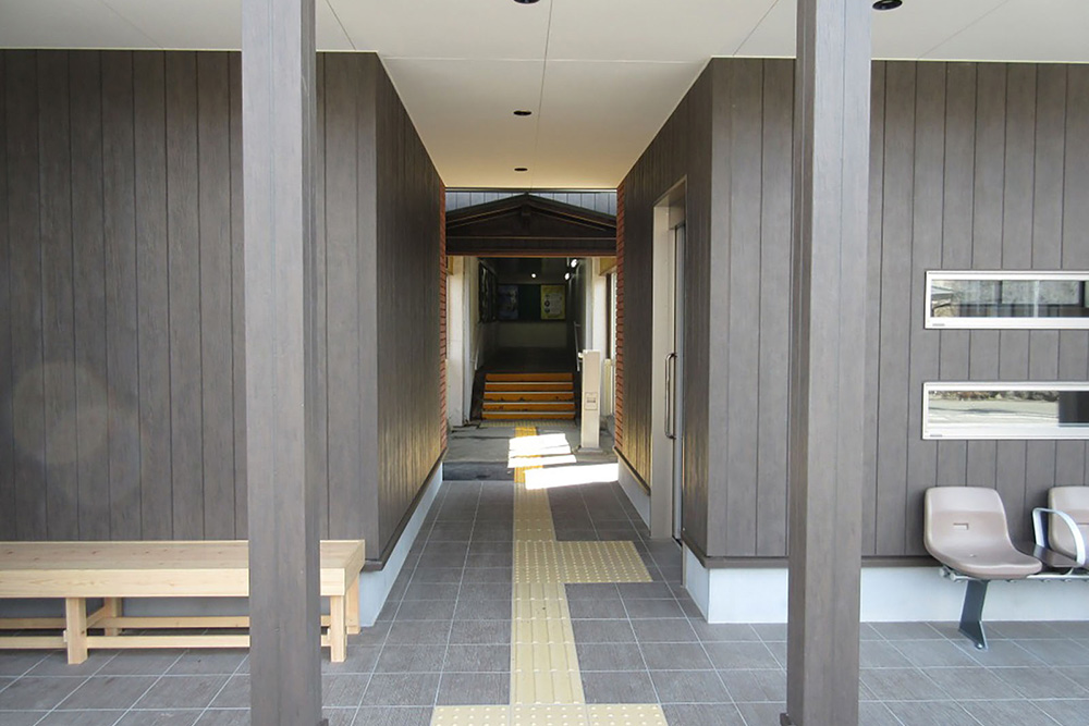 宮守駅のある釜石線はSL銀河の停車駅となっており、既存駅舎の経年による老朽化や無人駅となったことから、コンパクト化を行った。本駅は駅本屋とホームとは約5m程の高低差がある為、ホーム上からの景観にも配慮し、塔屋をデザインとして取入れ、外装にはSL銀河の撮影スポットとして知られている眼鏡橋の景観や、宮沢賢治の世界観を連想させられるよう、レンガ調タイルと左官調に仕上た吹付け仕上げを組合せ、地域の顔として周辺環境と一体となった駅となるよう心がけた。