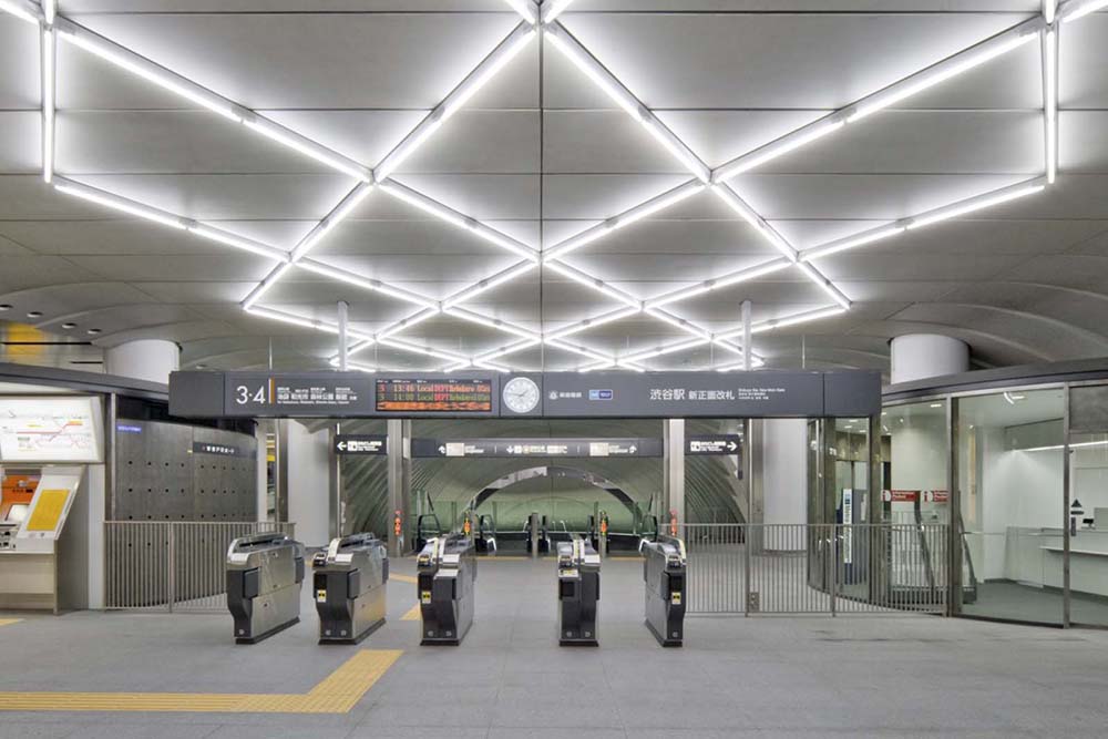 渋谷駅は、旅客の心に残る駅として『地宙船』『3層吹抜け楕円開口』を設置、合わせて旅客へ安心感及び開放感を与えている。また、『自然換気システム』『放射冷房システム』を導入し、環境負荷を低減している。過去に類を見ないさまざまな取組みを実現し、新しい時代の地下駅モデルを目指している。