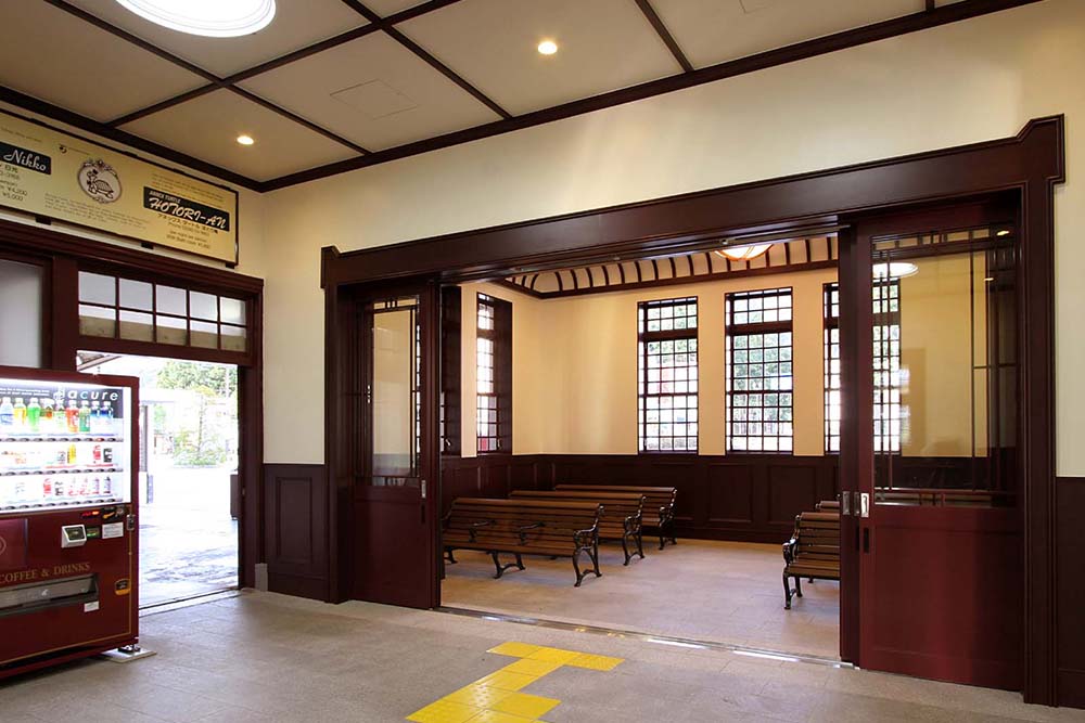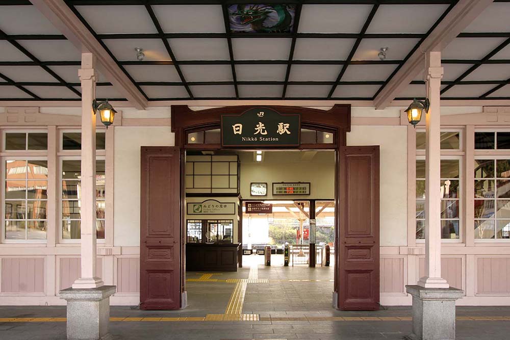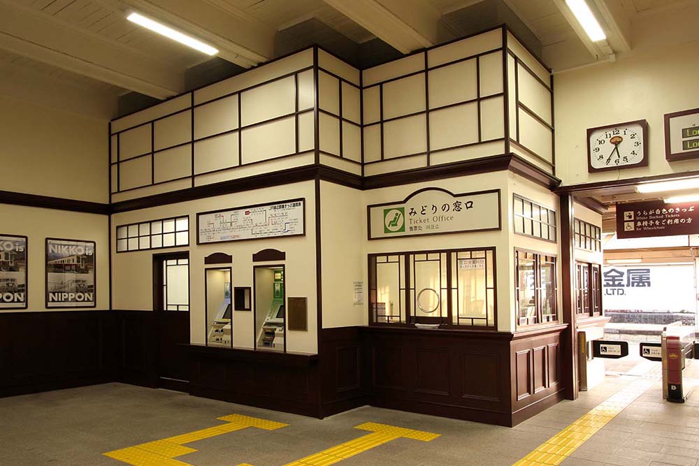 日光線活性化のコンセプトを「レトロ」、コンセプトカラーを「クラッシクルビーブラウン」とし、駅舎、車両デザイン、ヘッドマーク、ファニチャー等を統一したデザインで整備した。既存の優美な木造駅舎を生かし、出改札、コンコース、待合室の改良を行った。日光線という「ブランド」をつくり、地域の活性化に繋がることを期待している。