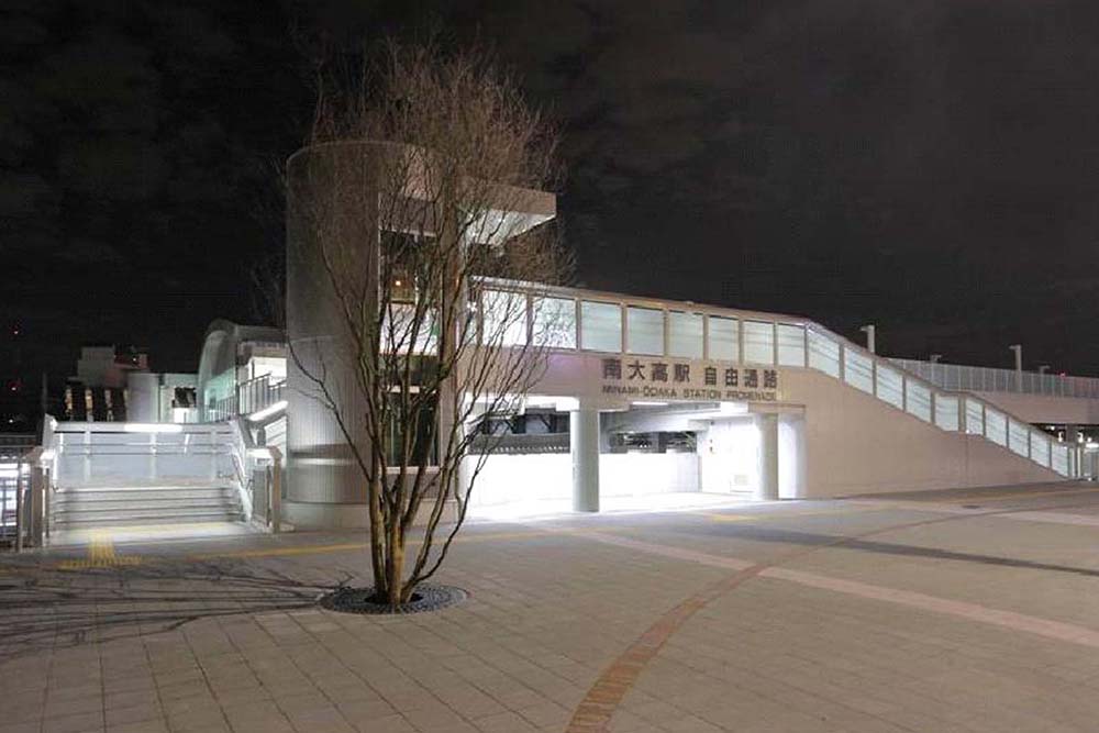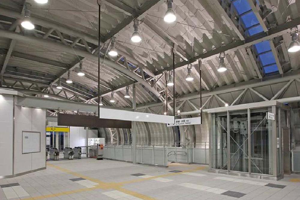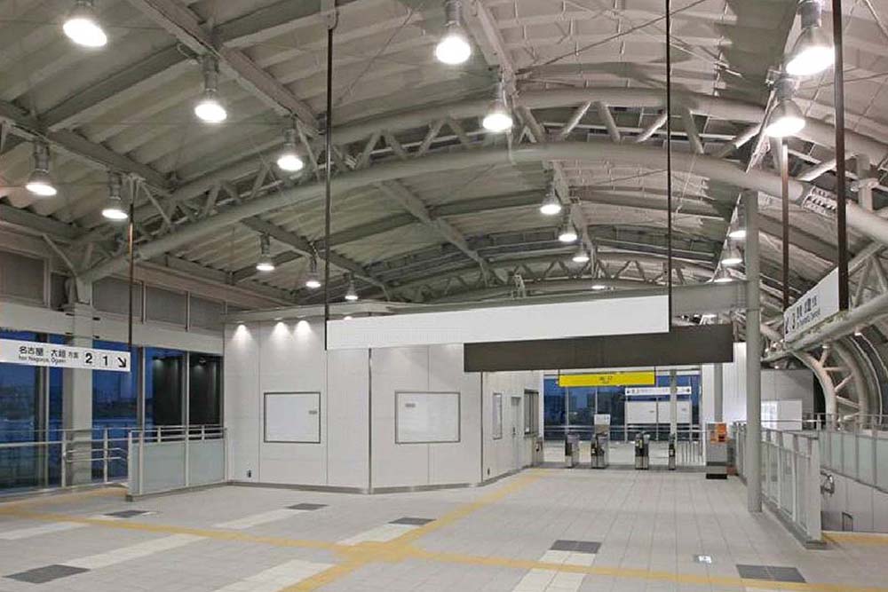 「新しい街と周辺の環境に配慮した、人に優しいデザイン」「街に開かれた駅」「開発地域のランドマーク」をコンセプトに、特徴的な曲面の屋根により街からの人の流れをやさしく包み込み、ランドマークとしての効果を狙い、駅西側のガラスカーテンウォールは、町に対して開かれたファサードとし、大高川水辺空間を臨むゆとりあるコンコースを演出した。