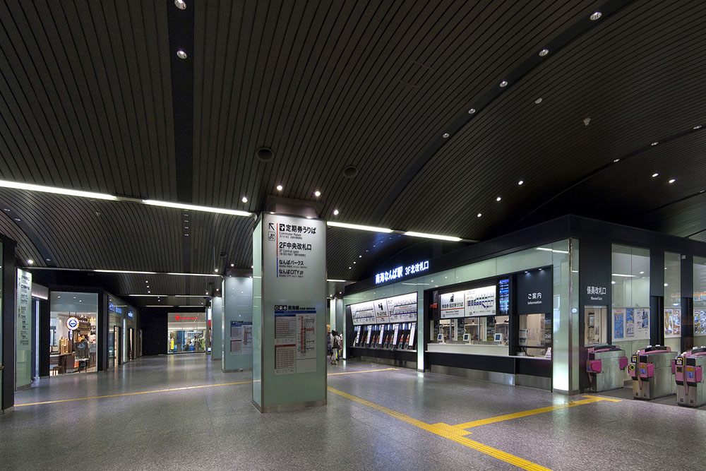 南海難波駅を中心とした南海ターミナルビルは「保存・再生・先進性」をキーワードに大阪ミナミの中心地としての再生を目指した。高さ30m、1200㎡の吹抜け大空間「なんばガレリア」を創出するとともに、昭和7年竣工時の意匠が残る外壁の保存と再生、駅コンコースの全面リニューアルなど、機能的で高質な空間整備を行った。