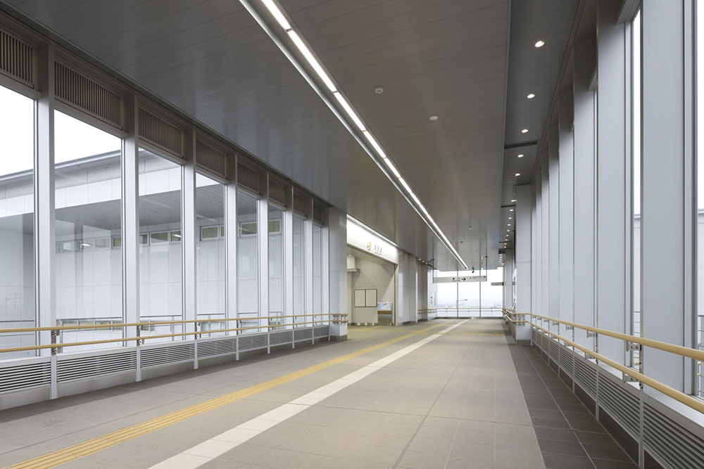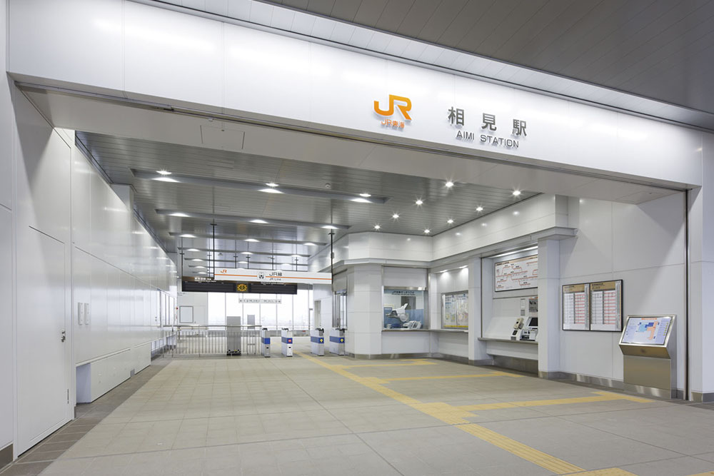 相見駅は、幸田・岡崎駅間に開業した新駅である。周辺は土地区画整理で新たに生まれた街であり、今後の発展が期待されている。建物は水平線を強調した伸びやかな外観とし、周辺の田園風景との調和を図りつつも、ガラス・金属素材を生かした近代的な面持ちとすることで、新しい街のシンボル施設となるようデザインした。