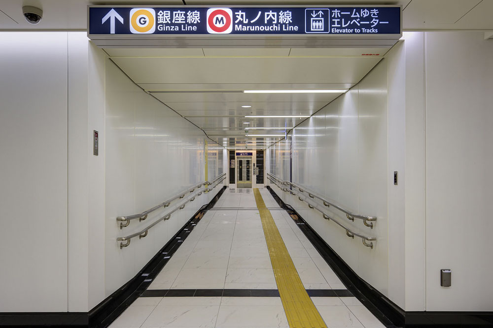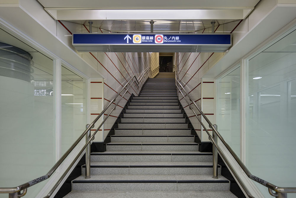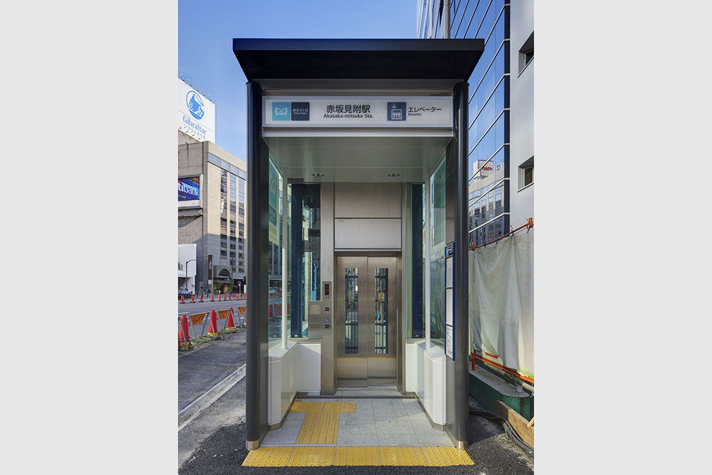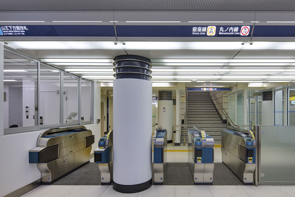 東京メトロ銀座線・丸ノ内線赤坂見附駅は、駅出入口が1箇所のみであり、火災時の二方向避難路が確保できていない火災対策設備の未整備駅であったことから、出入口及びそれに繋がるコンコース等を新設するとともに、併せて既存ホーム・コンコース等の駅全体のリニューアルを行った。