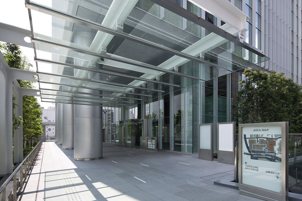 JR南新宿ビルは、JR東京総合病院の移転した外来棟・駐車場棟の跡地にオフィス機能を主体とした高層ビルとして計画された。また新宿サザンテラスと都道横断ブリッジを介して2Fレベルで接続する計画とすることで、JR新宿駅サザンテラス口から徒歩4分のアクセスを可能にし、隣接する病院までのバリアフリー経路も整備した。