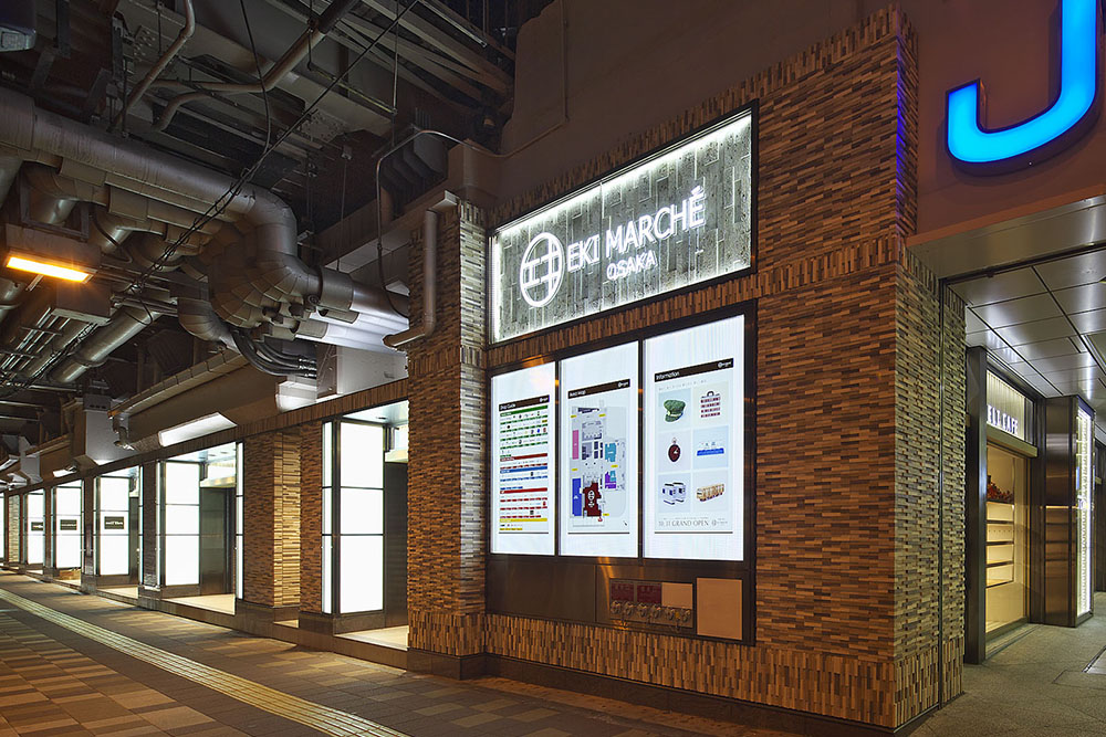 大阪ステーションシティ開業後、残されていた既存高架下の開発を行った。核施設となる「エキマルシェ大阪」は、西日本最大規模のエキナカ開発である。既存SCの抜本的な業態見直しと、既存不適格解消を同時に行い、併せて駅後方施設の整備と、コンコース及び周辺公共空間の美化を一体的に行うことで、駅機能の強化と賑わいの創出を図った。
