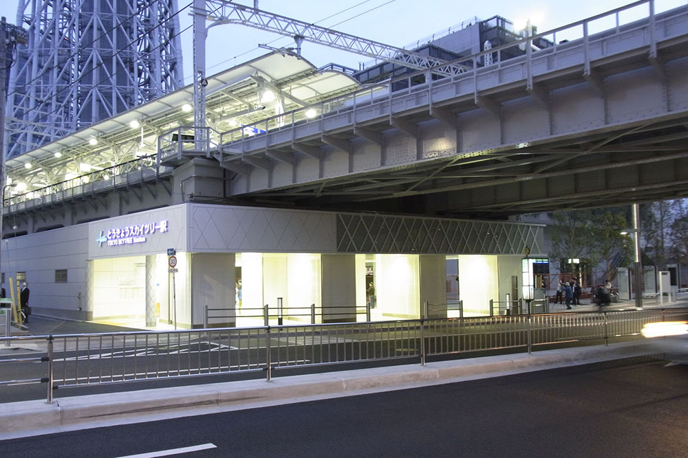 1931年の新築から約80年が経過した旧業平橋駅、東京スカイツリー開業に合わせリニューアル工事をを実施。高架柱は補強し駅舎は新しく明るくなり利便性も増した。ホーム上家も膜屋根に架け替えられ明るい空間となった。古いものを生かし新しいものを付け加える。歴史と未来が融合した新しい駅に生まれ変わった。