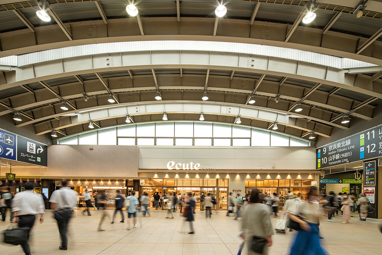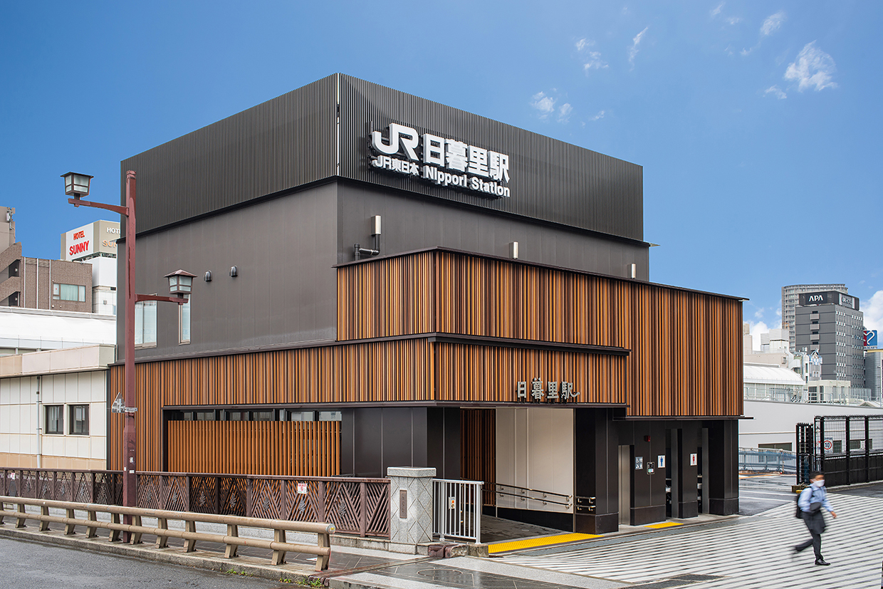 日暮里駅は、周辺に下町の街並みが続き、多くの観光客が訪れる谷根千エリアが近いほか、成田空港とも直結し、国内外の観光客を呼び込むのに最適な場所に位置している。一方既存駅舎は、通勤駅としての色合いが強く、無機質な空間になっていた。そこで、地域特性を生かしたデザインでリニューアルすることにより、街の顔となる駅空間を実現した。
