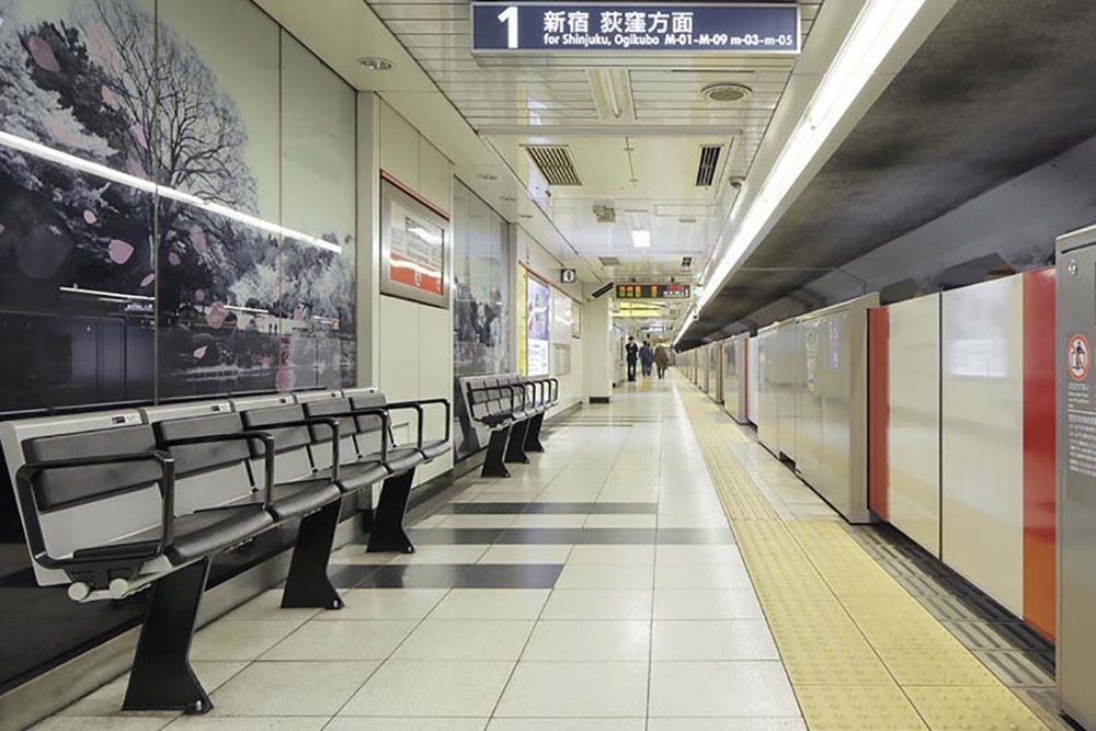 東京メトロでは、2016年6月までに整備可能な全ての駅(全140駅)のベンチをリニューアルしました。座り心地と機能を向上させたベンチを全駅共通の仕様とし、また設置場所の条件に合わせた3種類のベンチを設定することで、これまで旅客流動上の理由で置けなかった場所にも置けるようになり、設置数を大幅に増やしました。