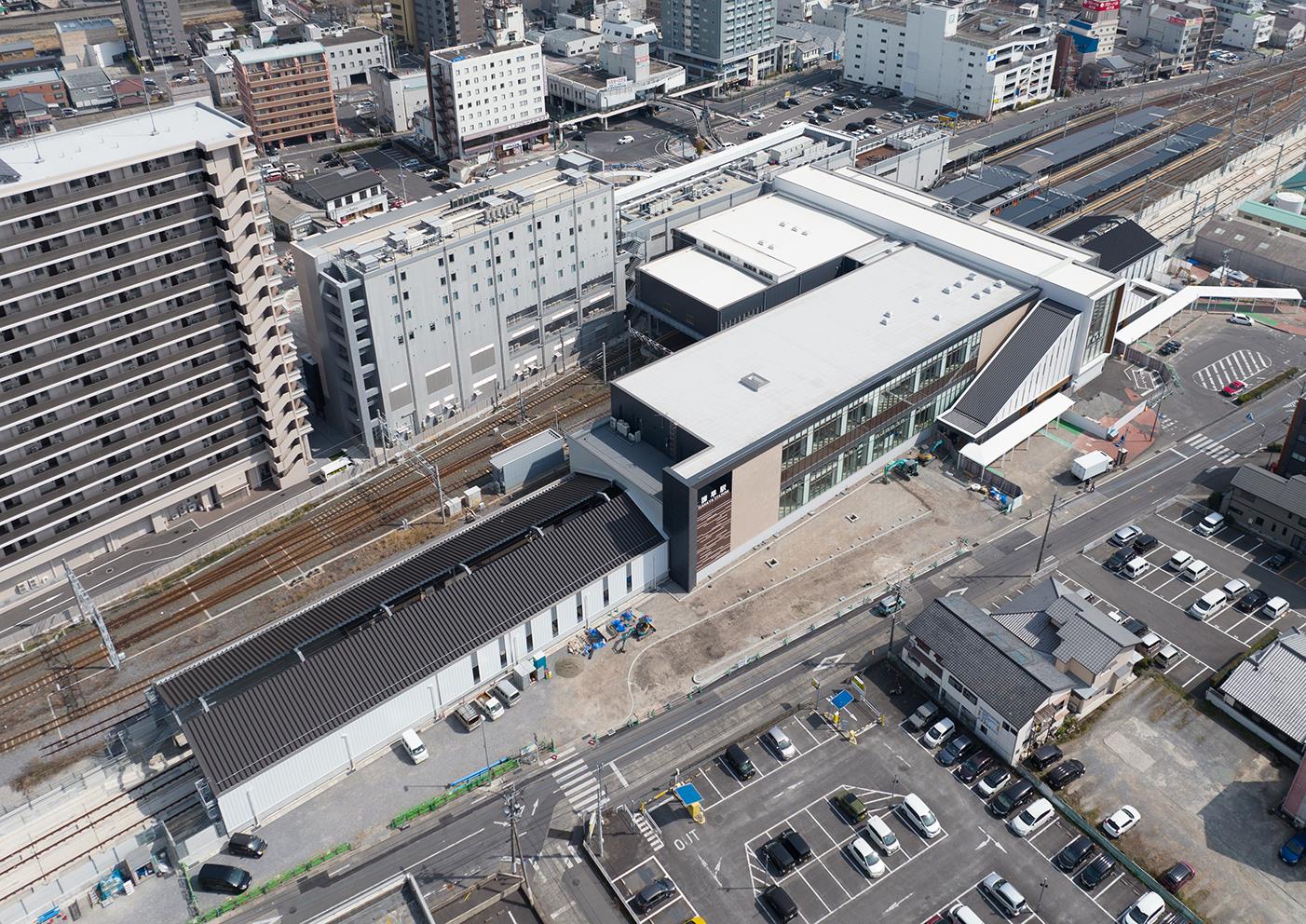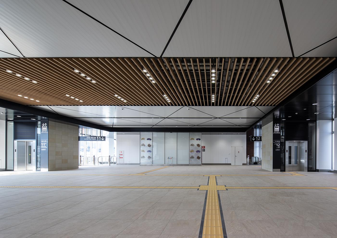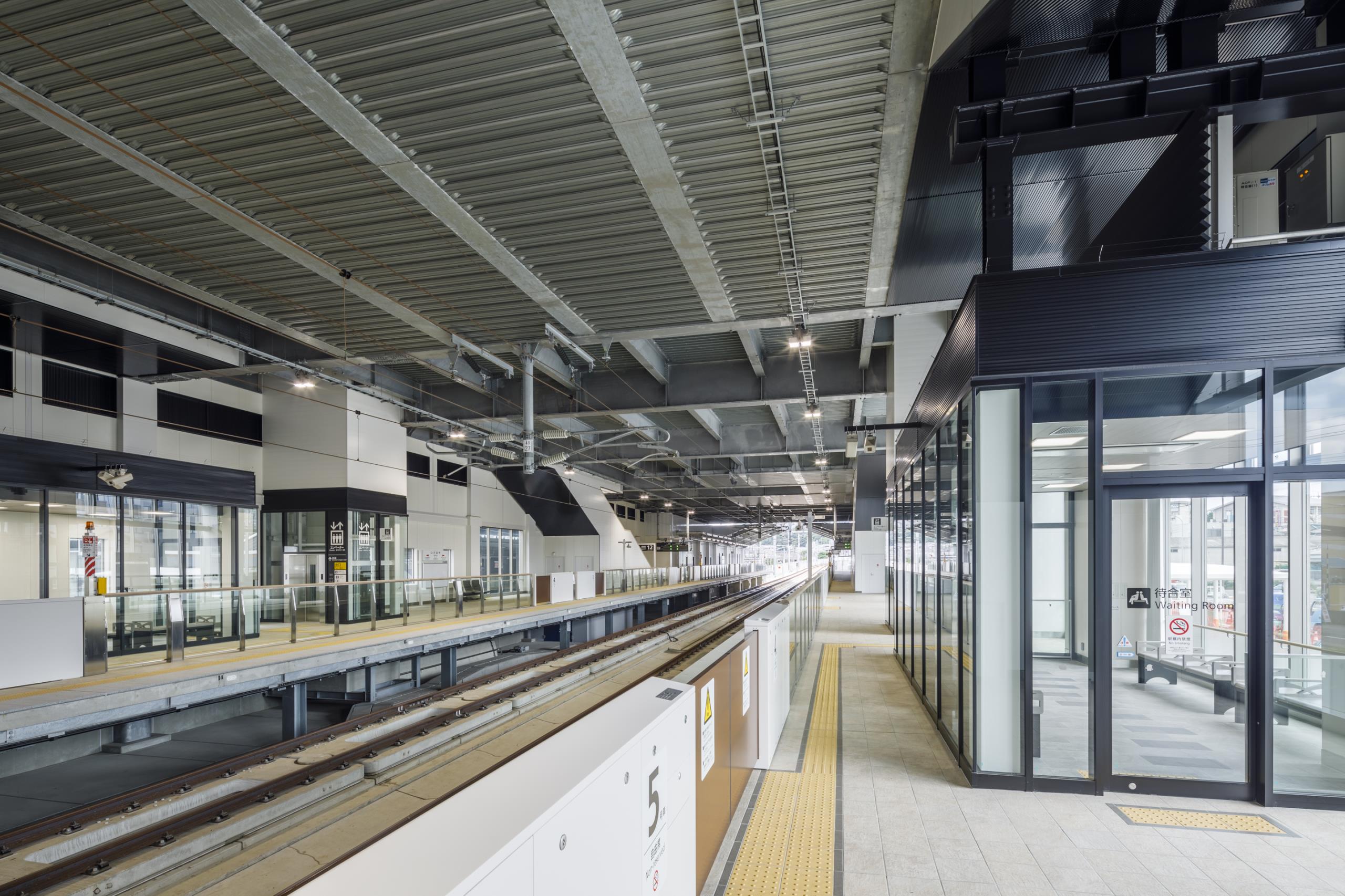 外観デザインは諫早の明るい未来を感じるゲートをテーマにしつつ、二柱式架構により橋上駅では困難だった明るく見通しの良いホーム空間を実現した。地元の文化や素材をデザインの要素として取り入れながら、市民協働企画による押し花アートを使ったガラススクリーンの制作や福祉団体とのUD意見交換会の開催により地域に愛される駅を目指した。