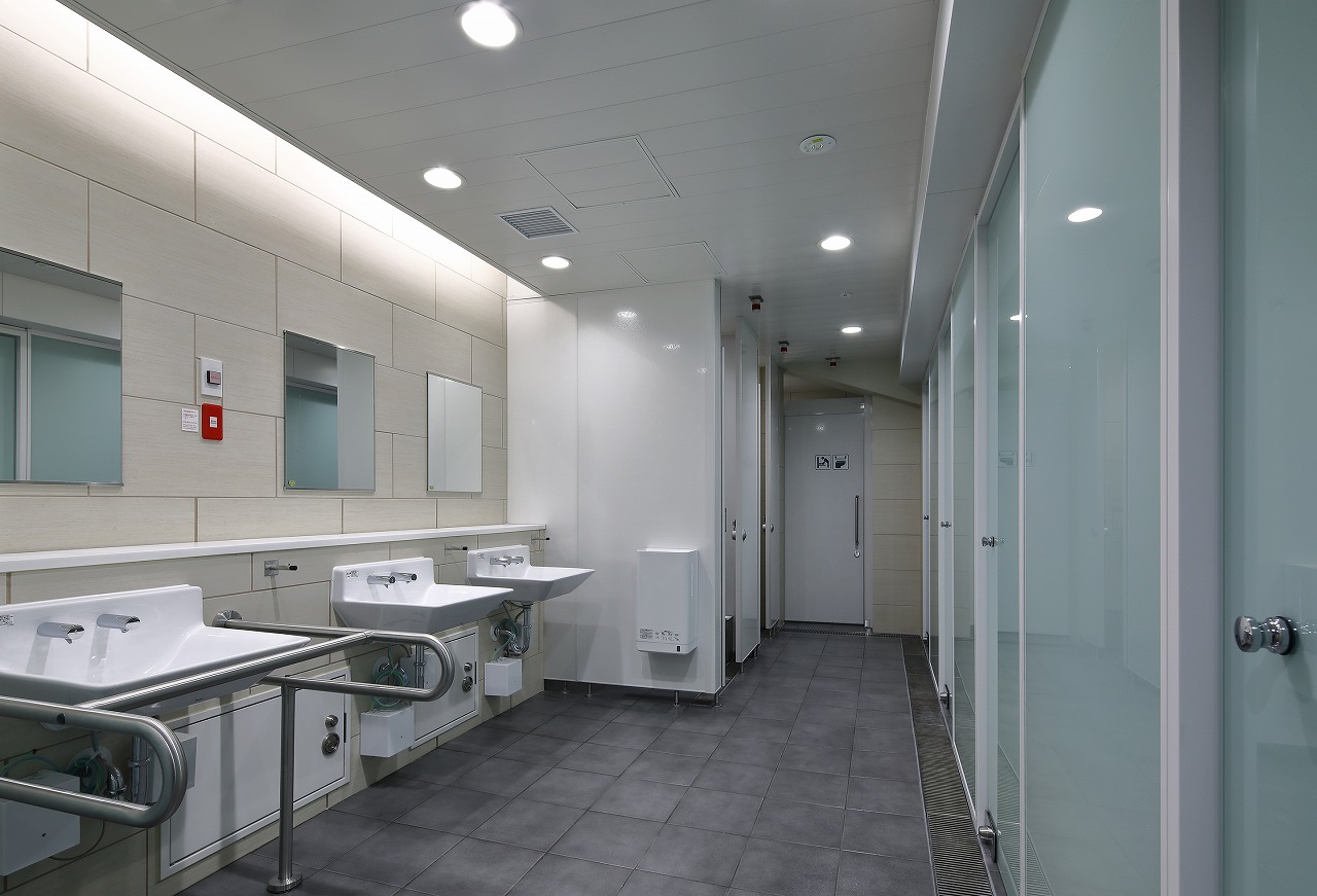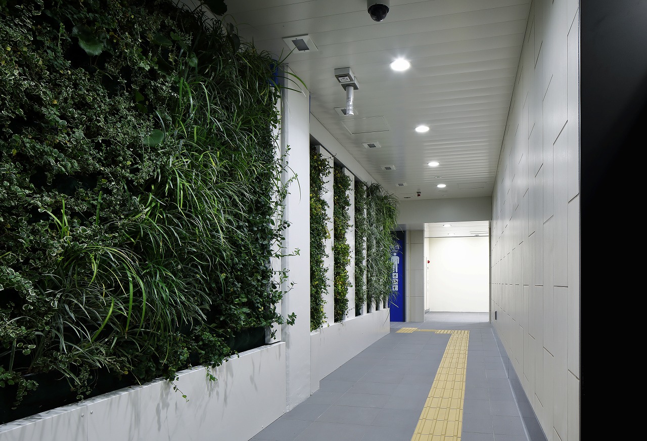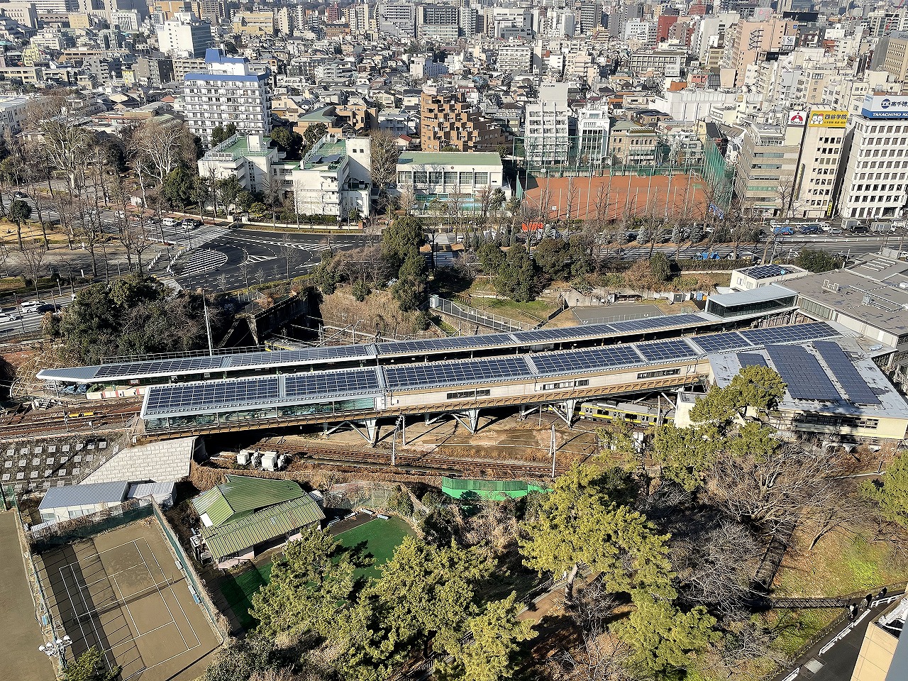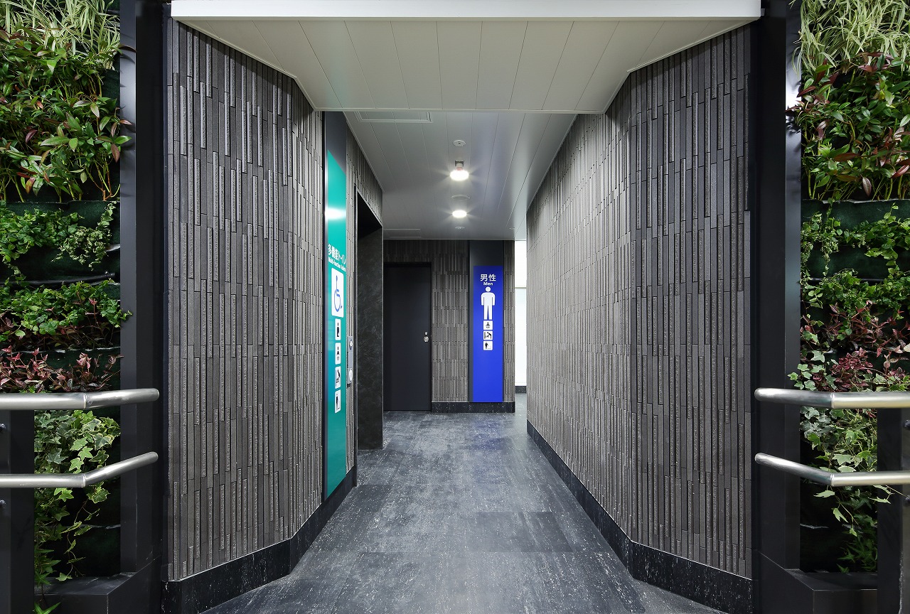 「史跡江戸城外堀跡」の範囲内に位置しており、文化材保護・歴史的背景の観点から材質・色・形状について配慮し、計画に取り組んだ。特に屋根新設にあたっては、文化材保護法に基づく手続きを行い、設置の許可を得た。壁面は、ガラスによる透過性のある壁とし、周辺環境を感じられるよう配慮した。また、屋根面に設置した太陽光発電システムについても、反射光を抑えられる防眩仕様としている。