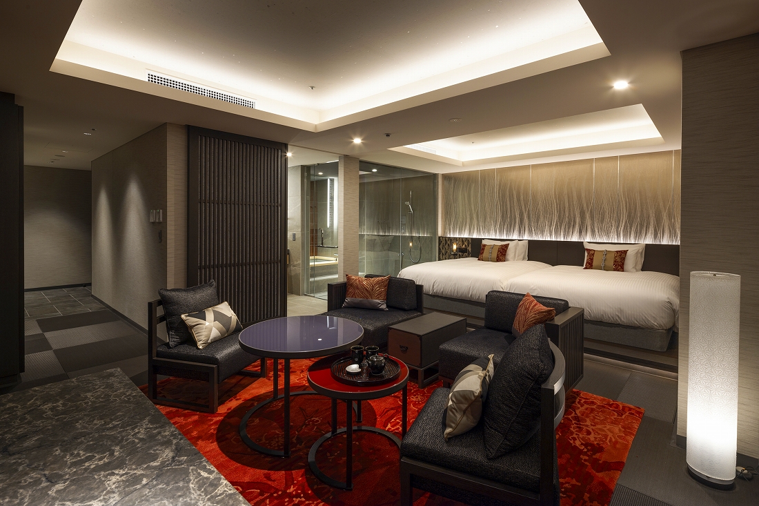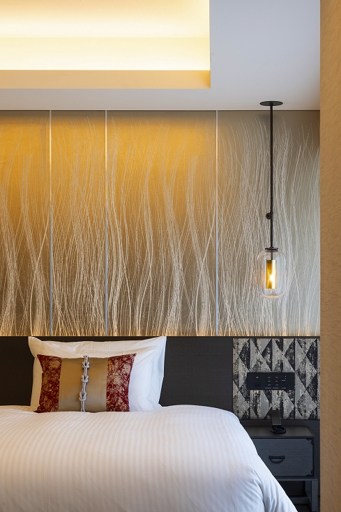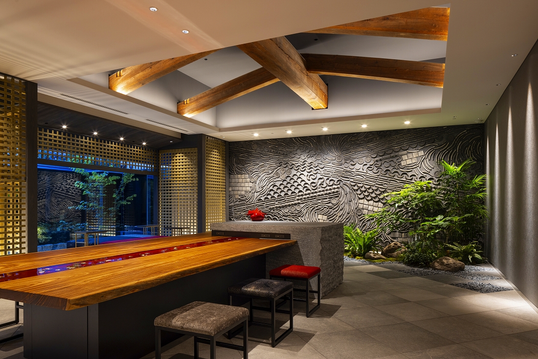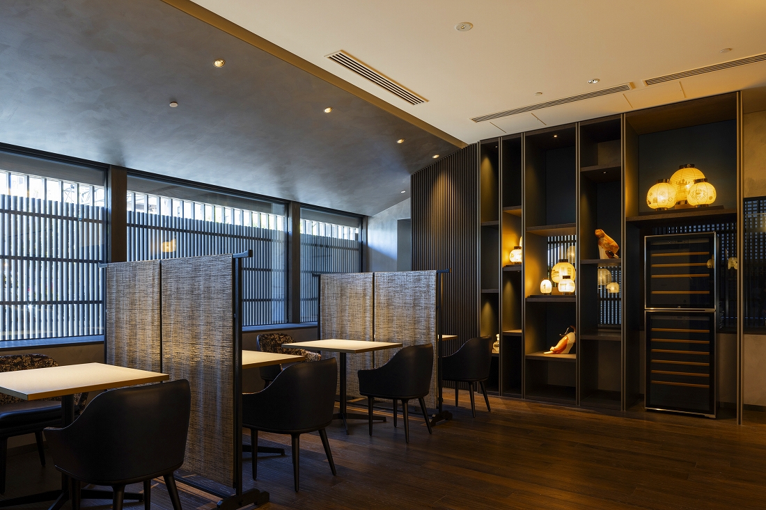 土地の記憶を継承すべく、元々当敷地に存在していた蔵の解体時に梁や瓦を生捕りにし、瓦はアートへ、梁は元あった位置に再現することで歴史ある京都の町の伝統を感じられる空間とした。