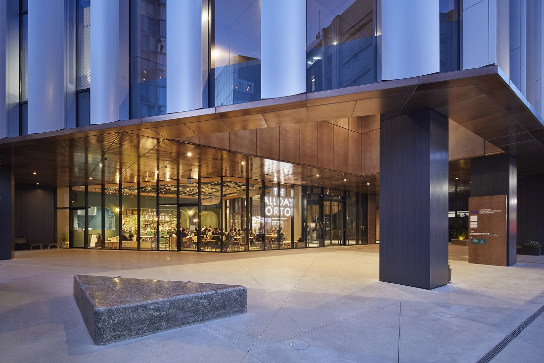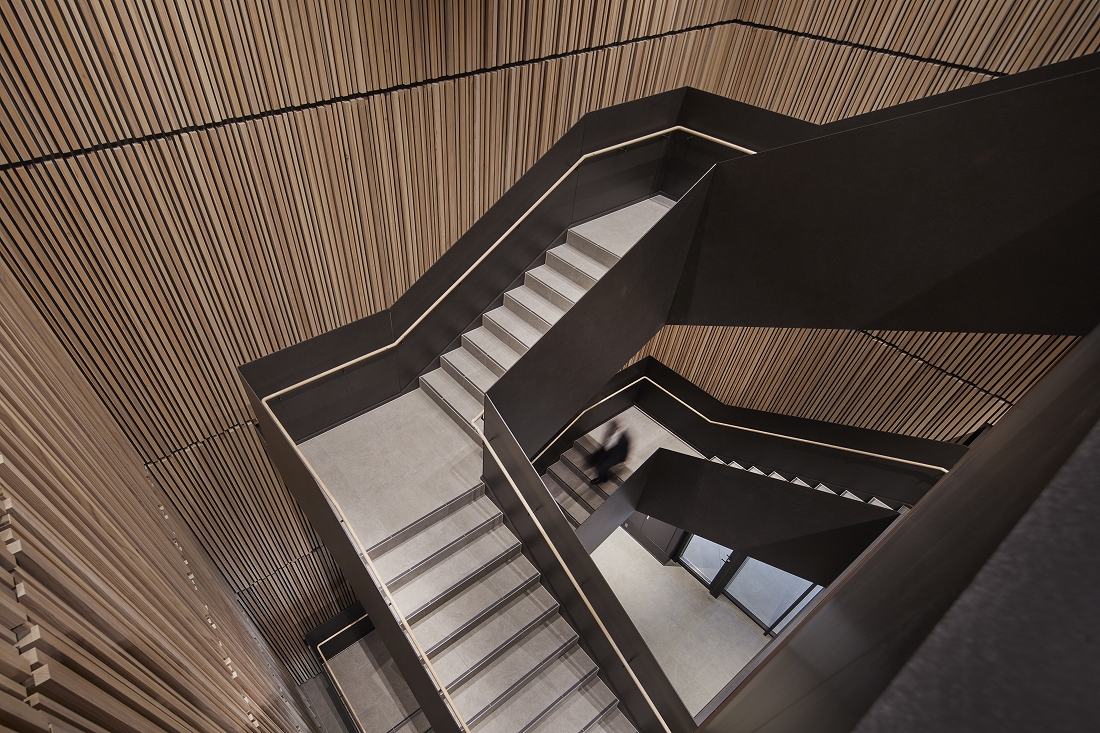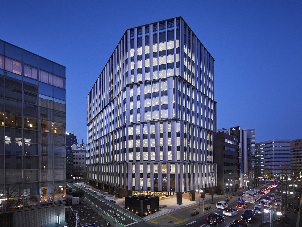 官民連携の再開発が進む博多駅の筑紫口エリアにて県敷地を有効活用した本プロジェクトは、博多駅東の新たな顔として、まちづくりのきっかけとなる、「働く場」「賑わいの場」「憩いの場」の3つの場を創出するランドマークを目指し計画した。デンマークの建築デザイン事務所に依頼した縦基調の特徴的な外観デザインは街並みとの調和を図った。