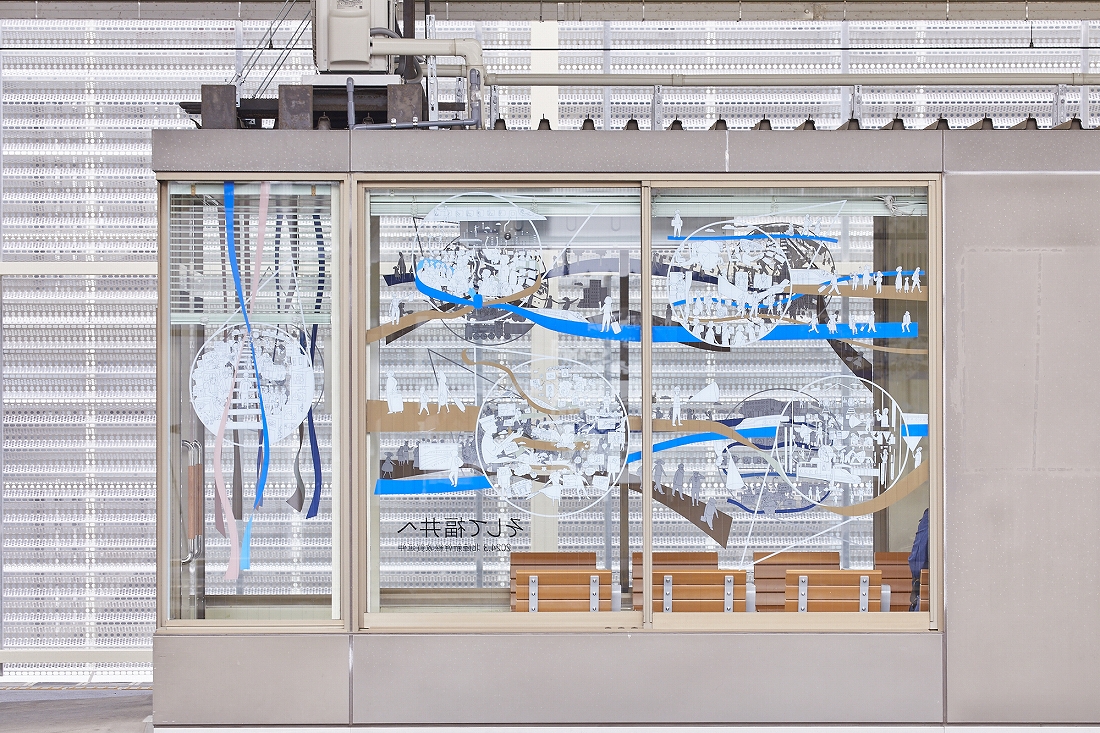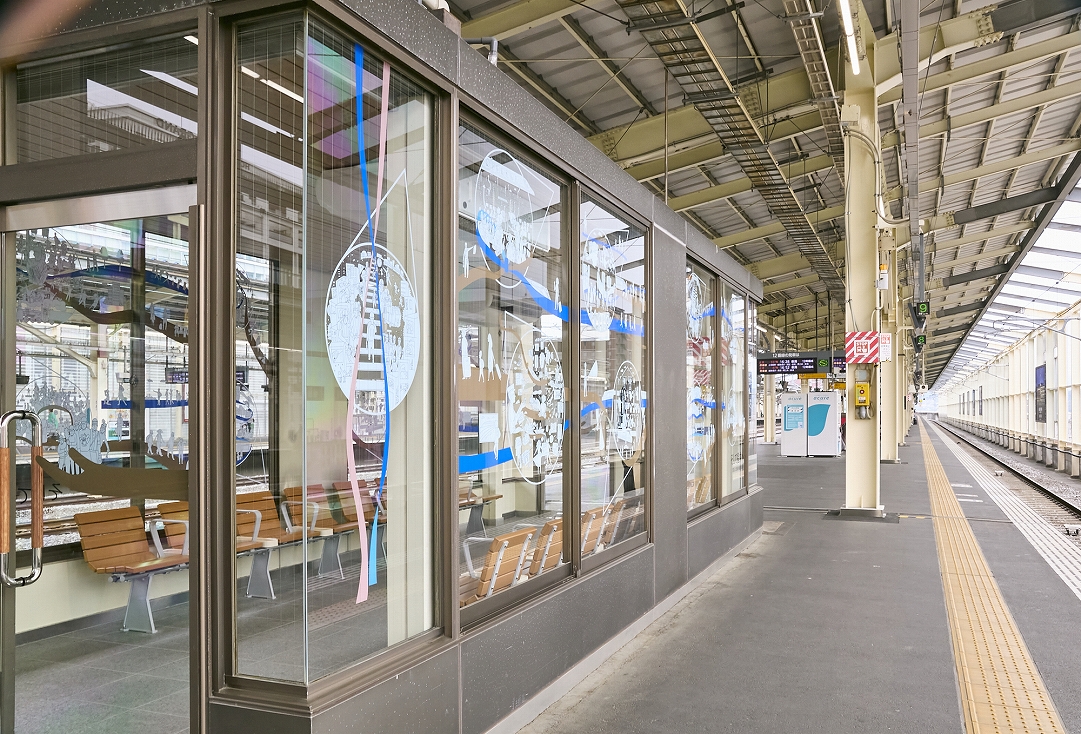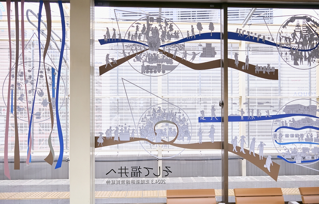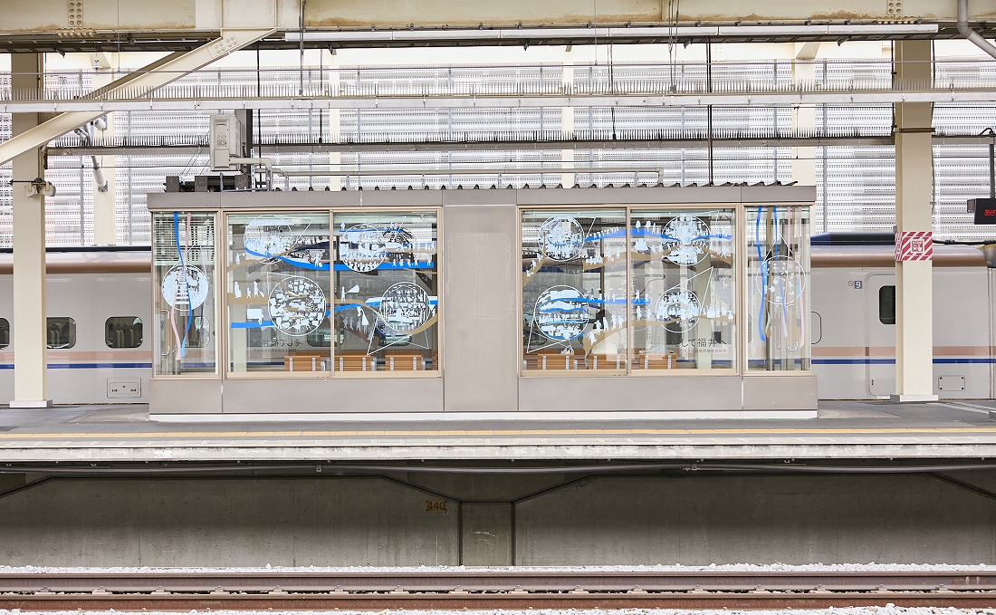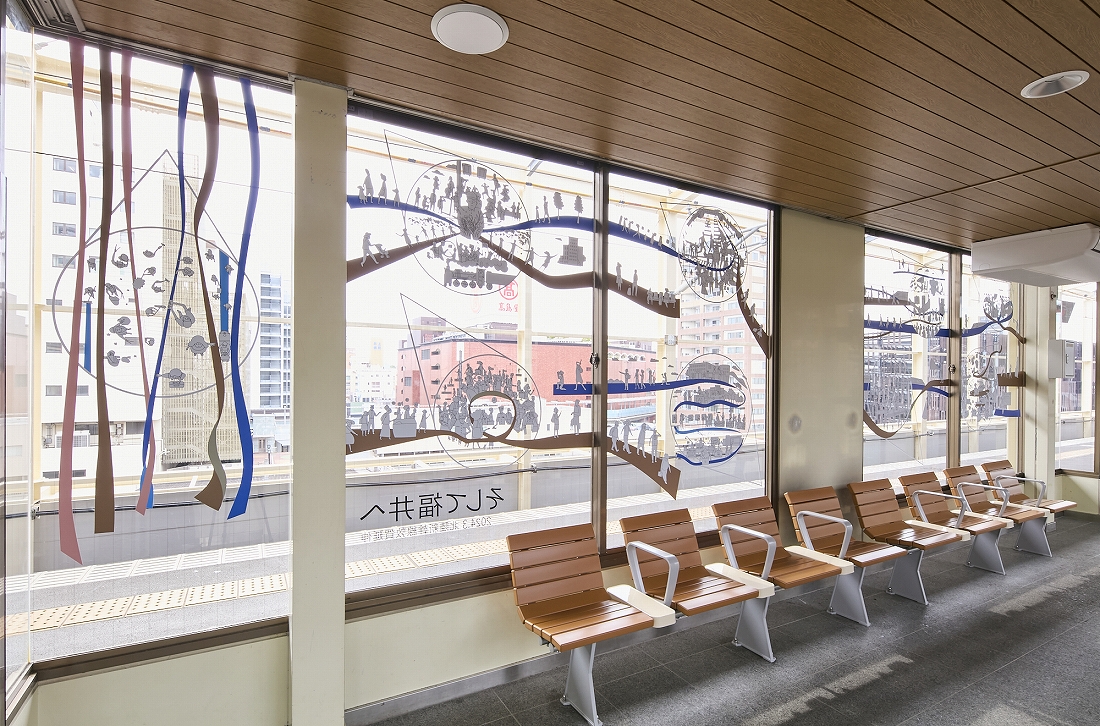 北陸新幹線 金沢~敦賀間開業を迎えるにあたり、高崎駅新幹線ホーム待合室のガラス面の装飾を行った。