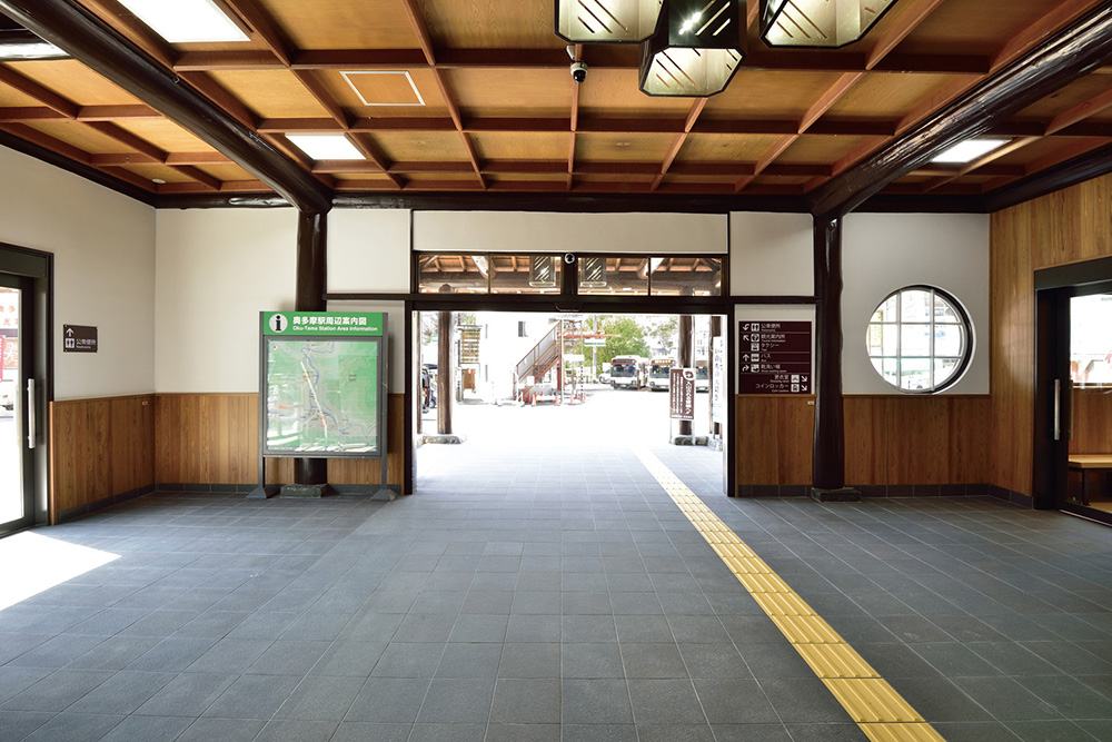 青梅線は立川から北西に延び、首都圏でありながら、豊かな自然に囲まれる路線です。その中でも観光資源に富む奥多摩駅・御嶽駅は、地元の方からも親しみを持たれている木造の駅です。今回、地場産材である多摩産木材を多く利用することで、観光地の駅としての機能を持たせつつ、地域共生を意識したリニューアルを行うことができました。