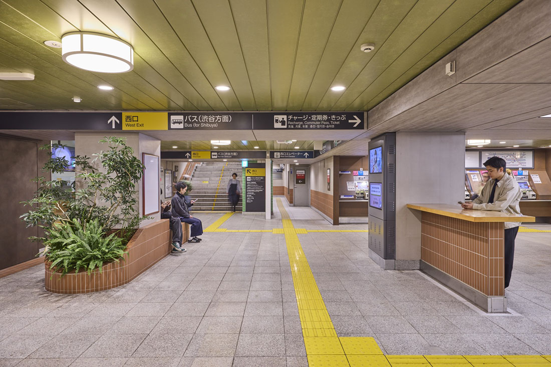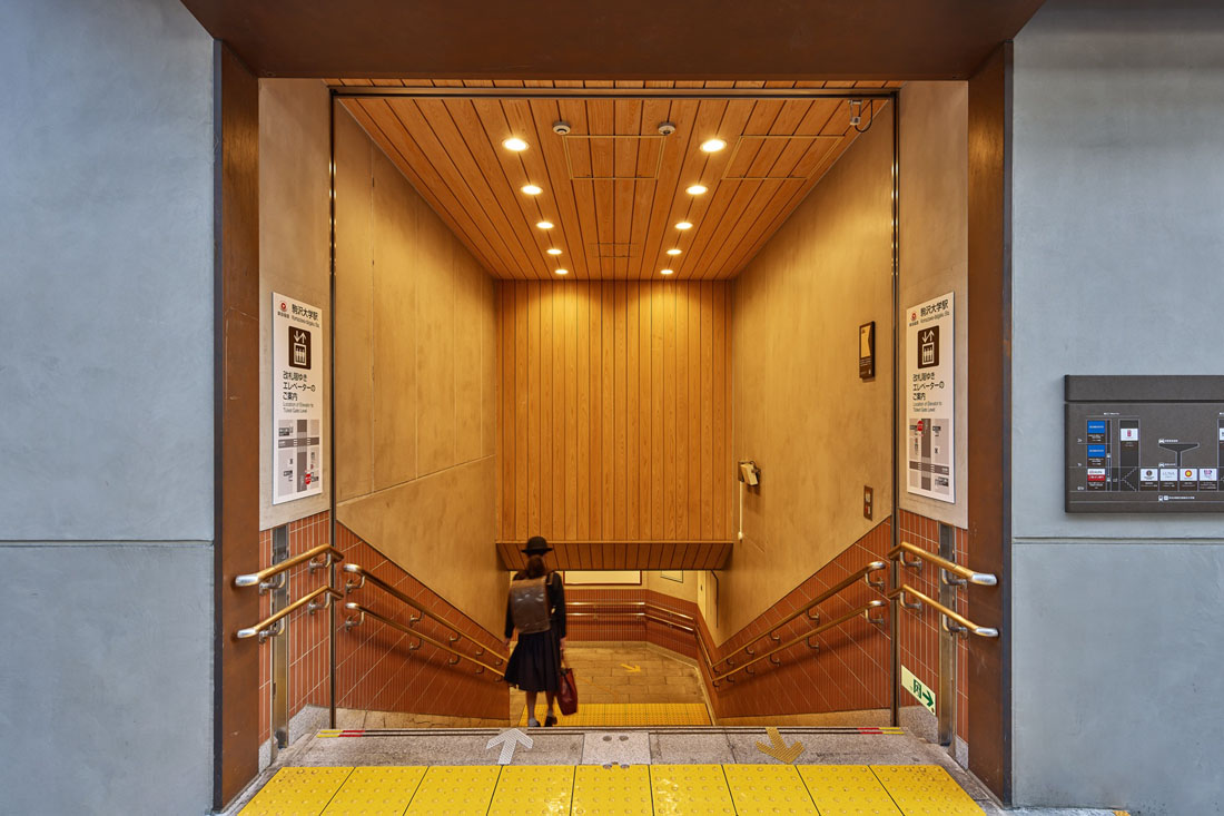本作品は老朽設備の更新を契機に新しい駅のあり方の提案を行った。全国初となる耐火構造技術の導入、廃材および木材の活用、グリーンインフラの整備等「脱炭素・循環型社会の実現」と周辺地域との連携や情報発信による駅を中心とした「地域の魅力向上」を行い、地下でありながら訪れる人が公園のように居心地よく過ごせる駅空間を実現させた。