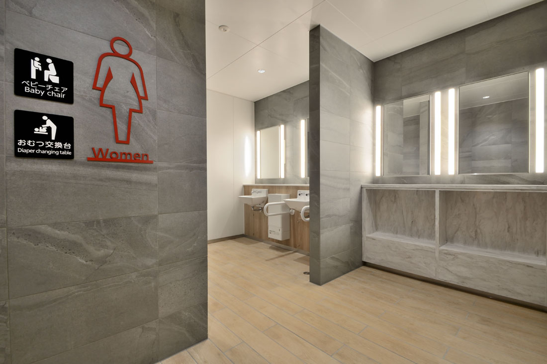 • 特徴的な仕上げ材屋根:メーカー;㈱淀川製鋼所 品名;ヨドルーフ166ハゼ/外壁:■ベース部 メーカー;㈱ノザワ/品名;アスロック■上部パネル メーカー;㈱ニック/品名;特注アルミパネル■下部縦ルーバー メーカー;TOPPAN㈱/品名;フォルティナ/建具:メーカー;YKK AP㈱/天井:メーカー;ニチアス㈱/品名;ケイカル板/壁:メーカー;INAX/品名;磁器質タイル/床:メーカー;INAX/品名;磁器質タイル