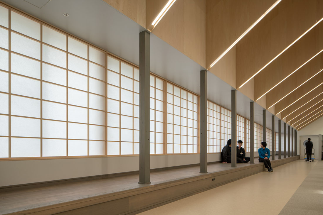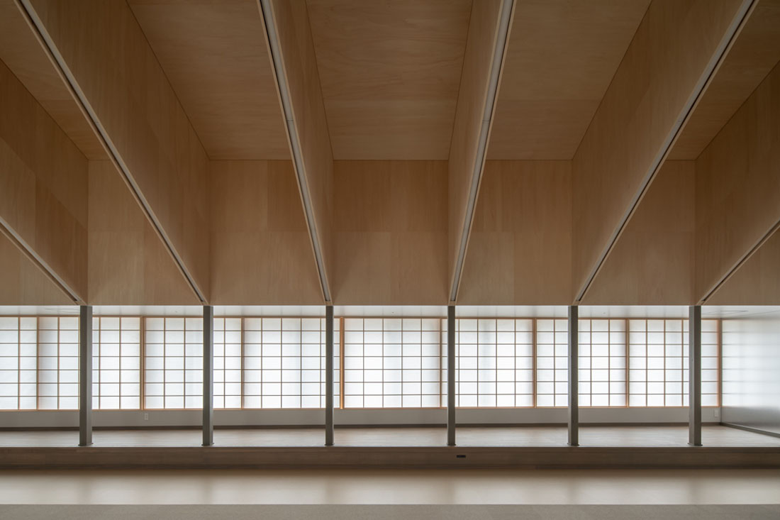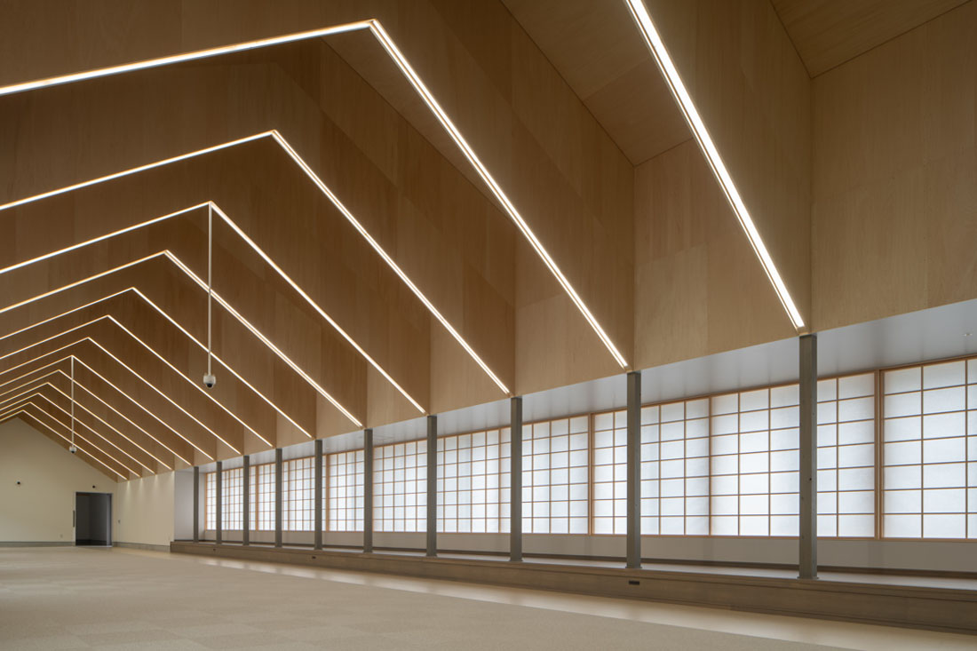 長方形の執務空間で東西の自然光が部屋全体を明るくし、動線を簡略化して判り易い空間としました。次にセキュリティを確保しながら執務室と休憩室に跨った天井高さの違う小上がりのバッファゾーンによる空間により抑揚を付け、一方天井はトラス下に照明を組み込みスッキリとした空間を構成し「少し開かれたオフィス」を目指した建築物です。