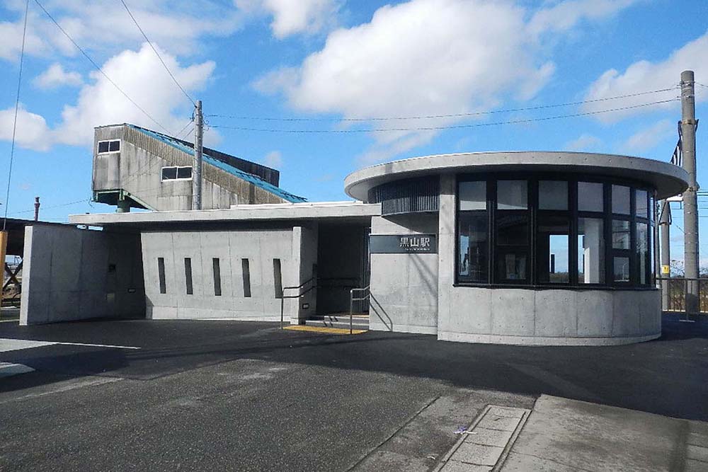 黒山駅は新潟県新潟市(旧豊栄市)に位置し、近郊には福島潟(野鳥、植物が集まる自然公園、潟)が存在する。新たな駅舎には、旧豊栄市の指定花とされていたオニバスの葉っぱ(大きな丸屋根)と、福島潟の代名詞である菜の花畑(縦方向の凹凸、格子)を取り入れた。また、隣接する継電気室と駅舎の関係性について、機能、意匠の両面で配慮した。