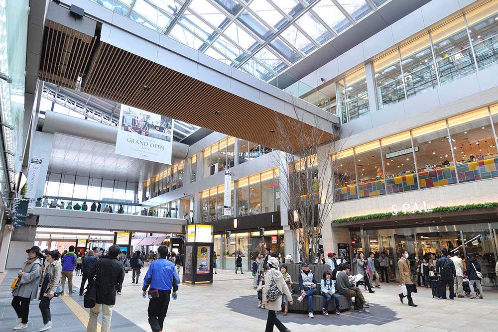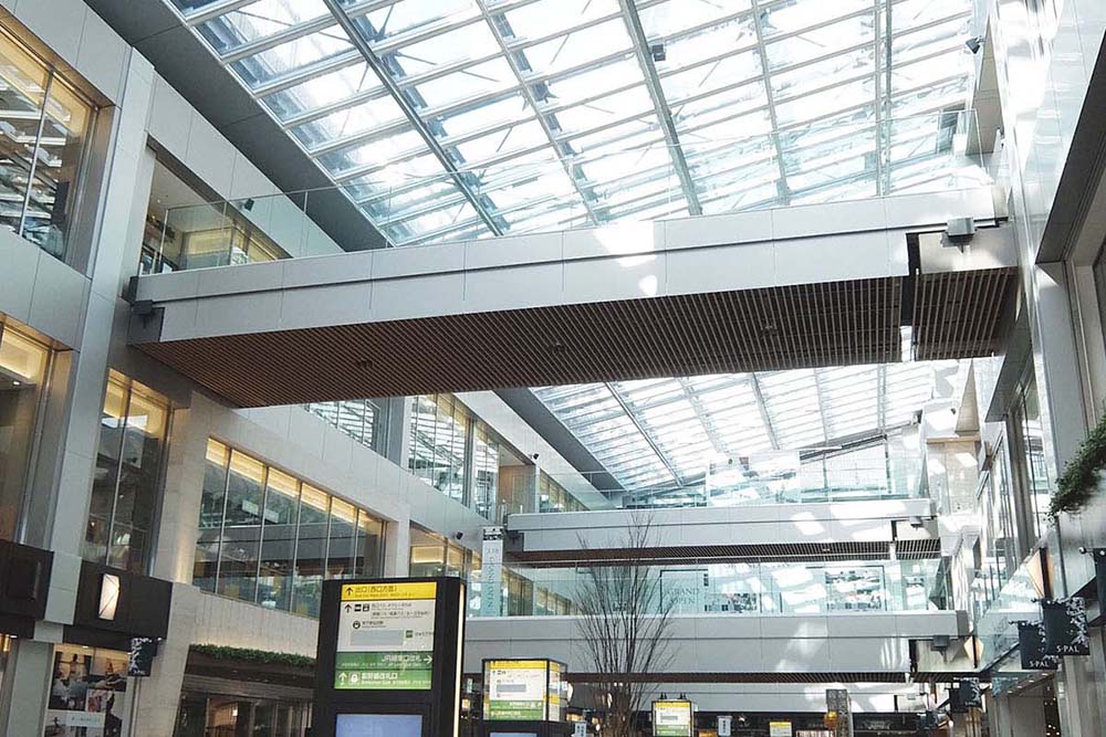 広域的で求心力のある拠点づくりを自由通路の拡幅と駅ビル建設を核に実現するプロジェクトであった。3層吹抜けの自由通路は、ガラス屋根から自然光の降りそそぐ高さ16mの大規模なアトリウム空間となっている。自由通路を南北に位置する駅ビルは、自由通路上空を横断する5本のブリッジにより立体的な回遊性を持たせた。