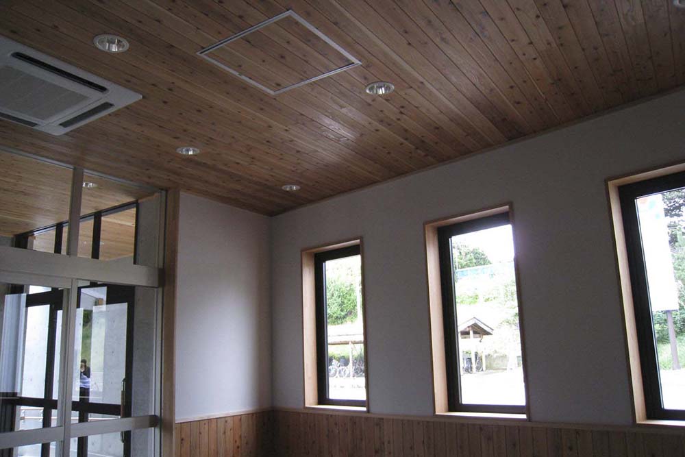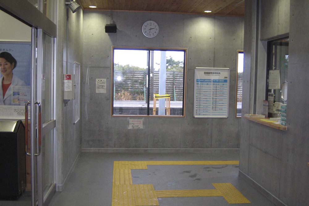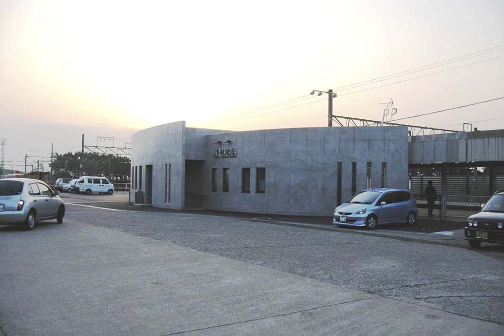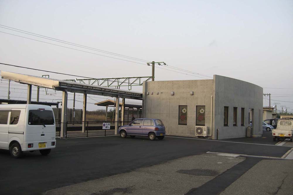 長岡・直江津間に位置する柿崎駅で老朽化駅舎の改築を行った。従前の大きな駅舎から、待合室・旅客トイレ・駅事務室をコンパクトにまとめ改築した。地域に密着した駅をコンセプトに、RC造でありながら温かみのある駅を目指し、待合室に仕上材として県産杉を使用した。また海岸に面している為コンコースへの風の吹込みを低減させる形状とした。