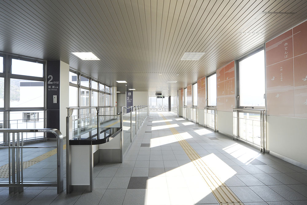 たつの市は、童謡「あかとんぼ」の作者である三木露風の出身地であり、「童謡の里」と呼ばれています。また、城下町であり武家屋敷や古城などもあり「播磨の小京都」とも呼ばれています。地域の産業として手延素麺、醤油醸造などが古くから盛んであり、その最寄駅にふさわしい観光駅とするため、デザインを和のイメージで統一するよう計画しました。
