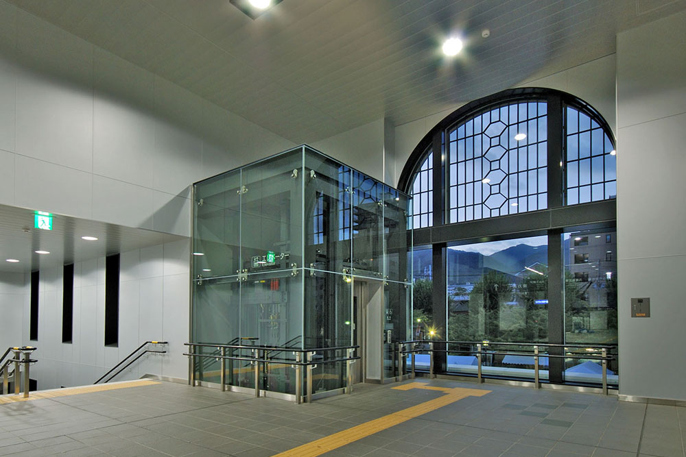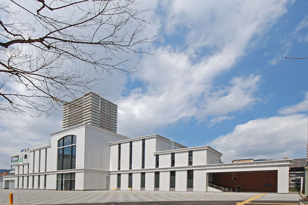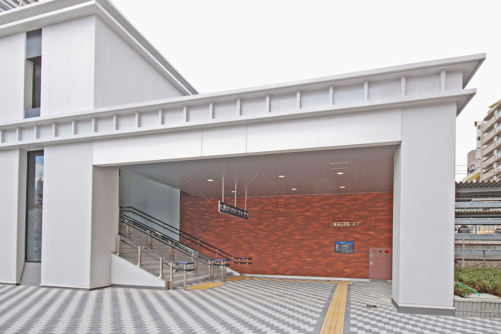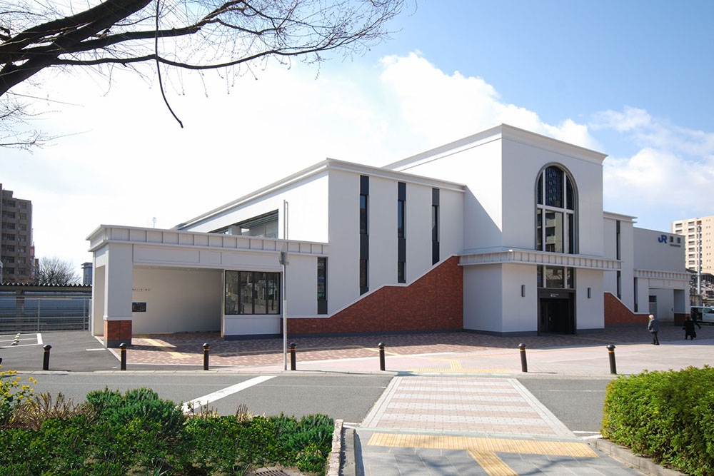 地元による歩行者交通円滑化の要望を受け自由通路を設置し、あわせて既存駅舎の橋上化を行った。駅周辺は、従前より文化施設の集積する地域として特色あるまちづくりが行われてきているが、新しい駅舎のデザインは、大正時代以来、そのような特色あるまちの中心で長年皆様に親しまれてきた従前駅舎のイメージを踏襲させることが望ましいと考えた。