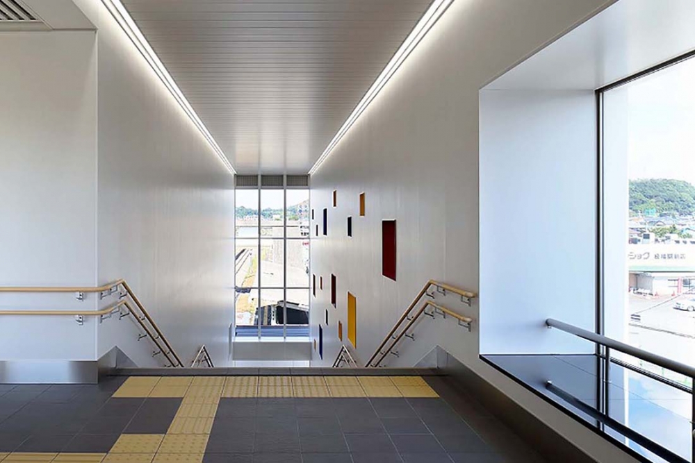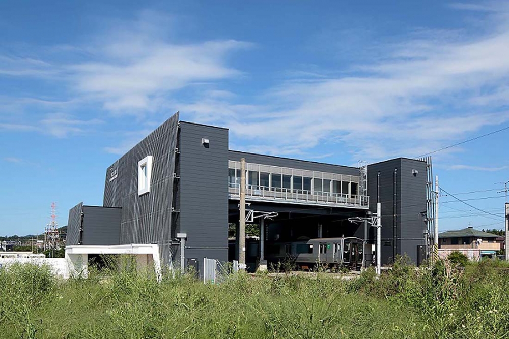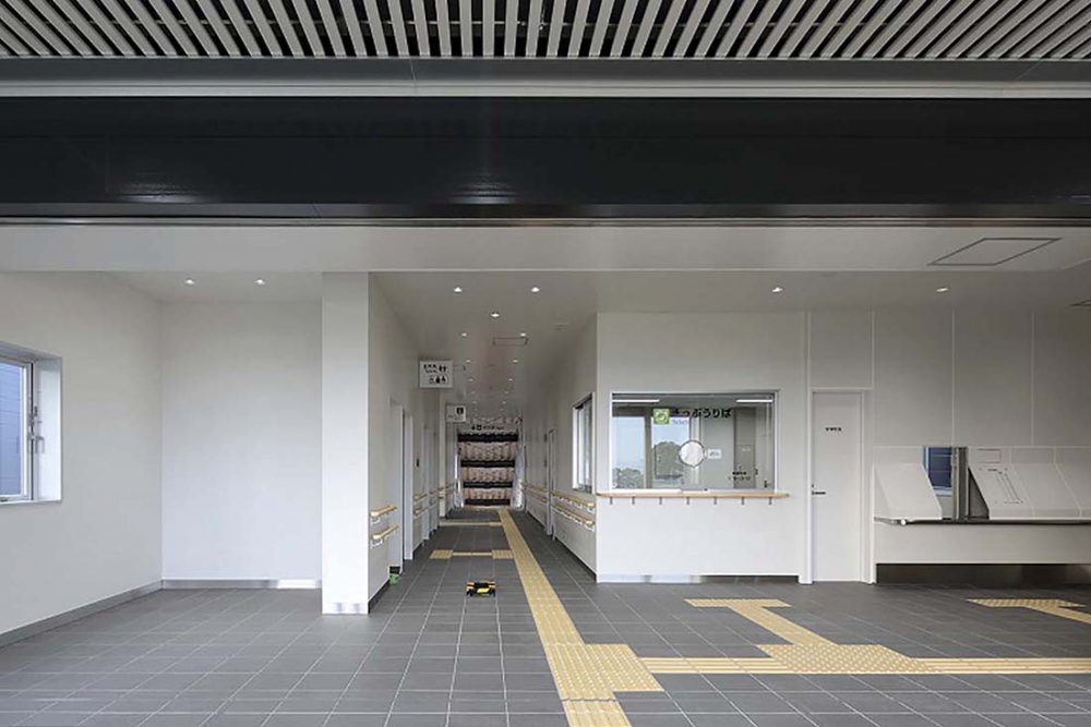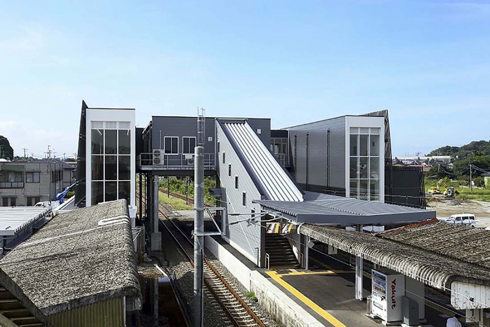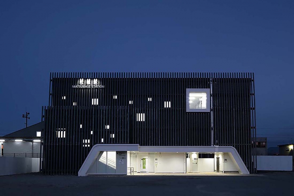 熊本県宇城市に位置する松橋駅は熊本地震を乗り越えて平成28年10月1日に開業を迎えた。宇城市不知火町の沖合いで見られる「不知火のひかり」と「しなやかでやさしい」イメージをデザインコンセプトとした。「不知火のひかり」は、夜になると外観の多数の窓から灯すやさしい光で、「しなやかでやさしい」イメージを外観ルーバーにて表現した。