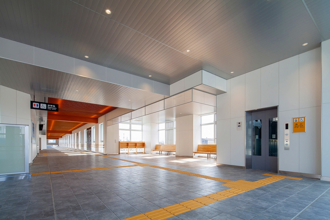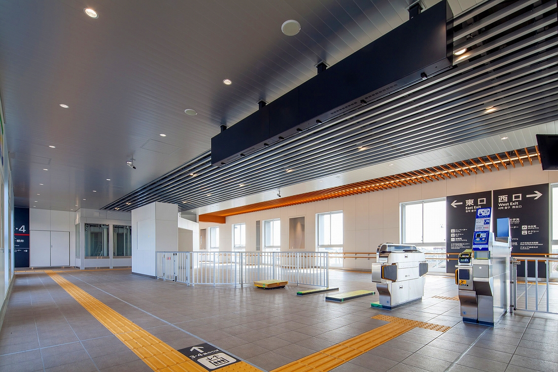 鉄道により東西に分断されたまちが繋がること、駅周辺が活性化されること、利便性が向上することを目的とした自由通路の新設および橋上化事業である。