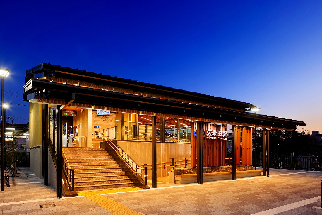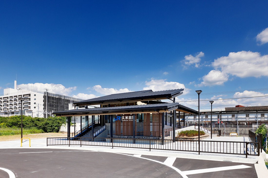 鉄道により東西に分断された駅へのアクセス改善や、駅周辺踏切の安全性向上を図るため、西口駅舎の整備を行った。大阪で一番大きな池「久米田池」があり、熊野街道が通る久米田。歴史ある町並みには「屋根の連なり」が残り、池や水路には「水面の揺らぎ」が垣間見える。これら、まちの要素を駅の各所で表現し、地元に親しまれるデザインとした。
