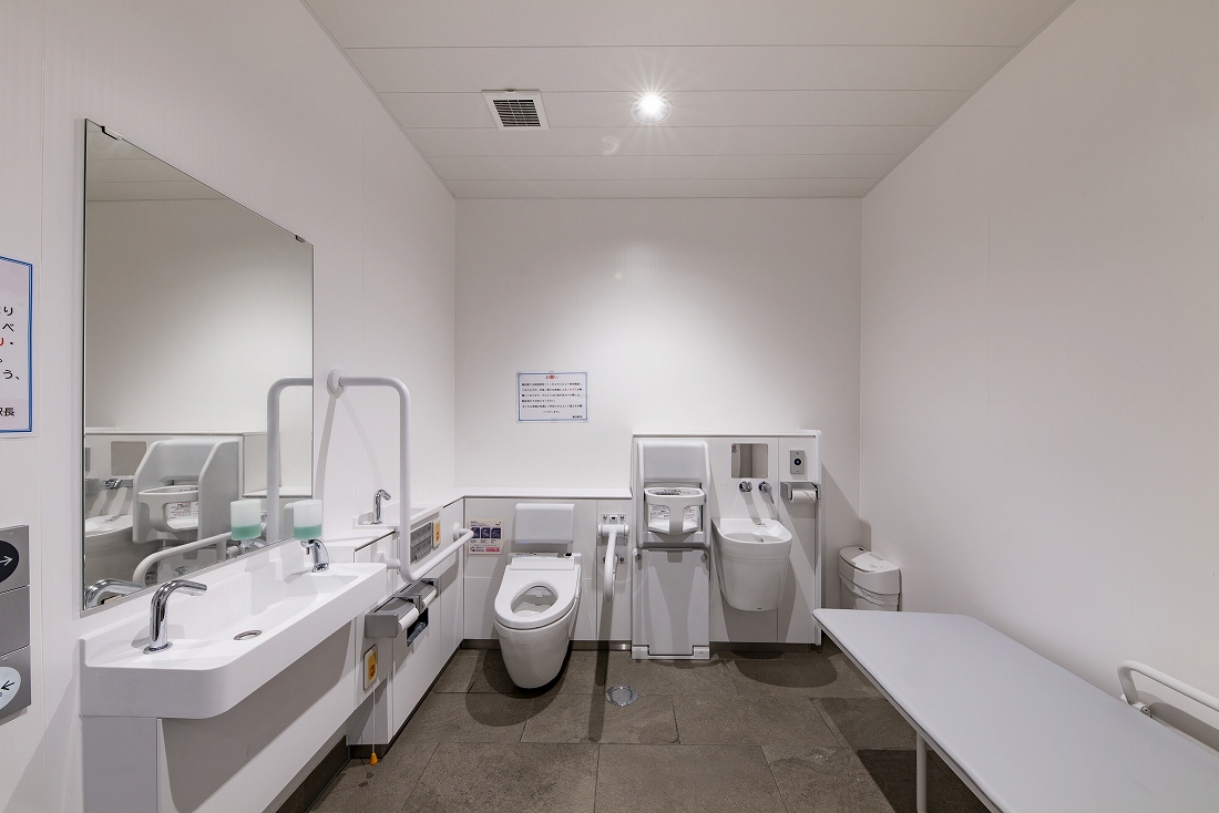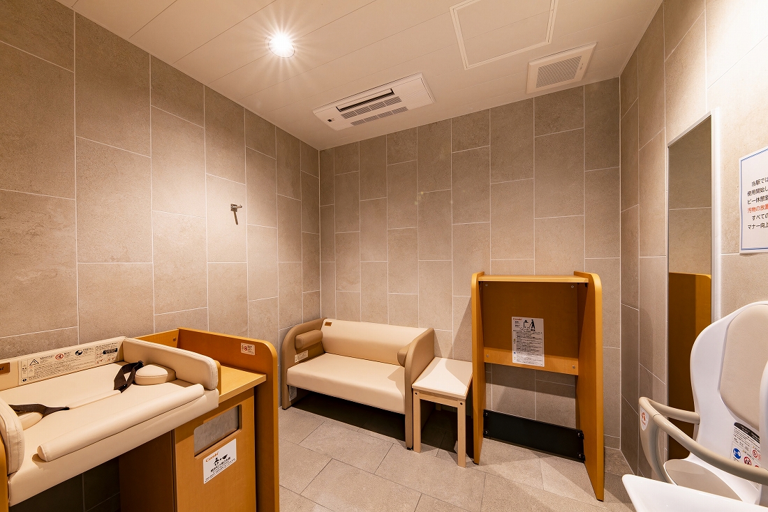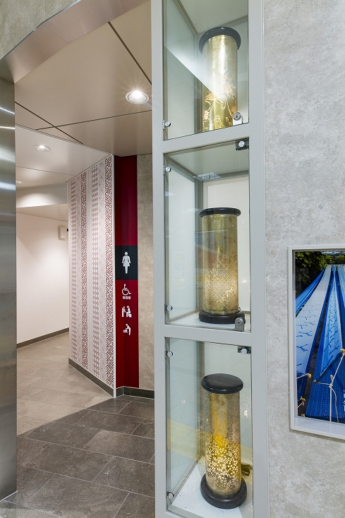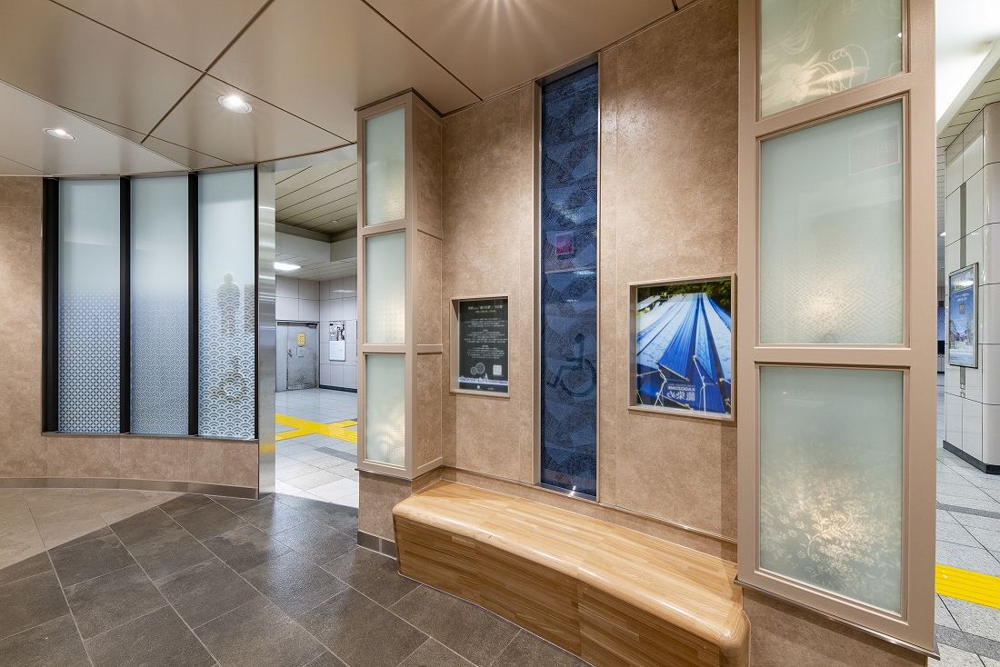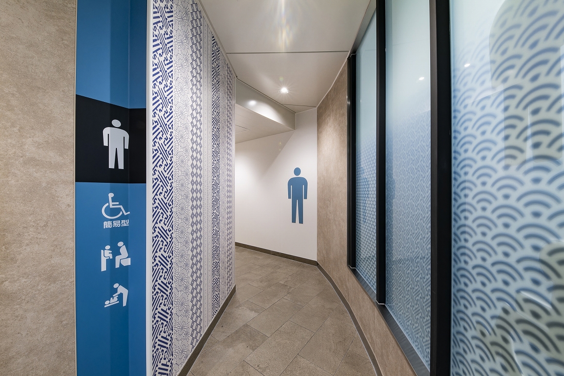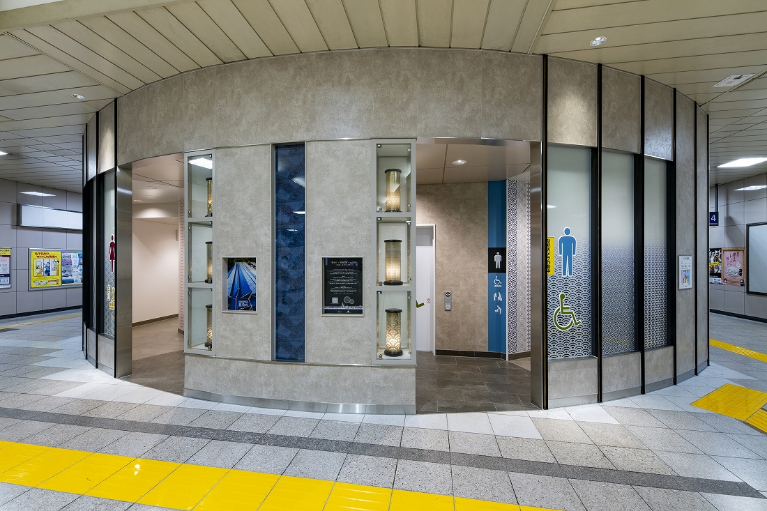 本リニューアル工事は、お客様用トイレの改築である。デザインコンセプトとして採用した「籠染灯籠」をファサード正面に設置したほか、籠染めにより染め上げられた実際の反物、かつての風景写真や説明版を配置した。また、授乳スペースのあるベビー休憩室や前室に待合ベンチを設けた子育て世代にも配慮している。