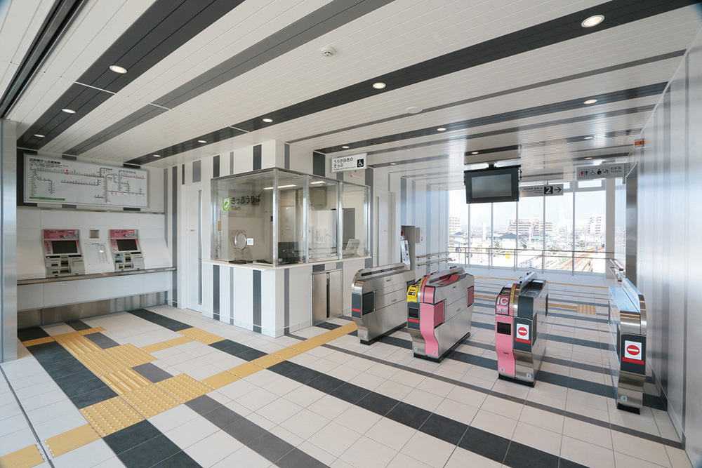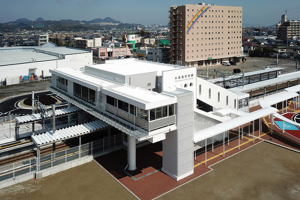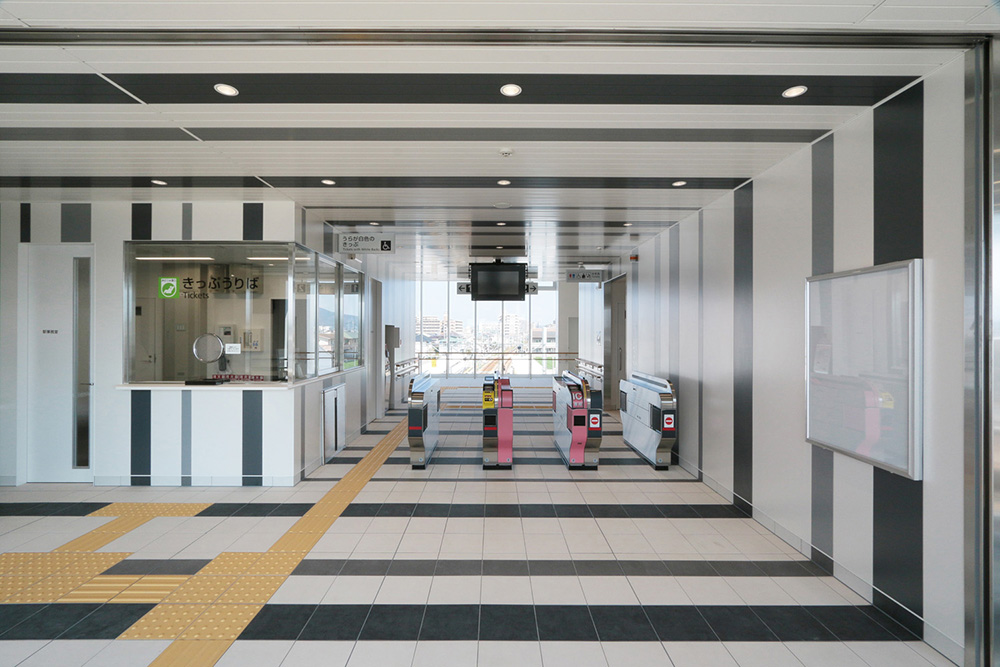 糸島高校前駅は、2019年3月に波多江-筑前前原駅間に弊社の568番目の駅として誕生した。デザインは「糸島の未来を映すキャンバス、白の駅」として、絵具のパレットをイメージした外観とし、内観は外観に合わせてモノトーンで統一した。よりシャープな印象となるように、建具や窓枠の見付面を極力薄くなるように施工図で検討した。