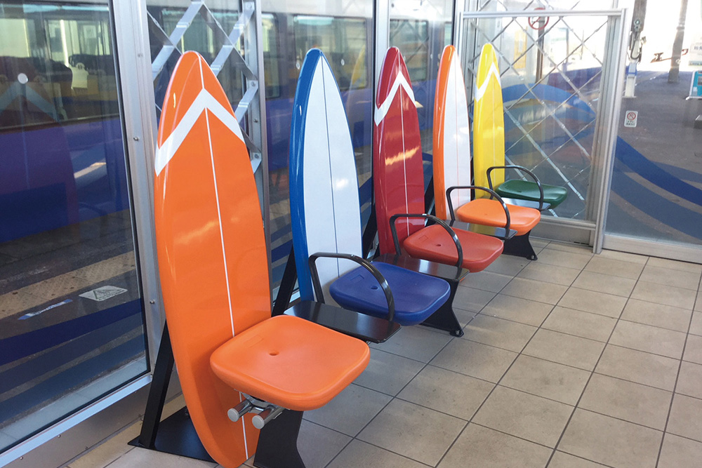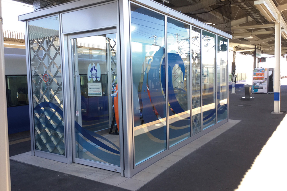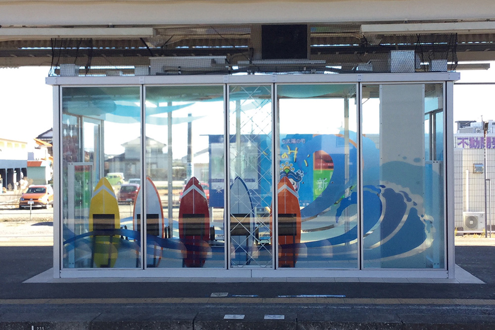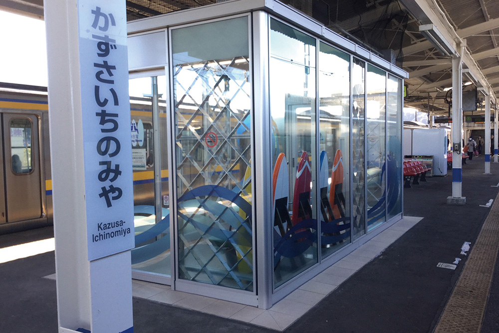 一宮町が2020年東京オリンピックのサーフィン会場となったことを受け、お客さまへのサービス向上を目的とし、上総一ノ宮駅の下りホームにアルミラチスパネル構造のホーム待合所を1棟新設した。待合所内にはサーフボードを模した5人掛けのベンチを設置した。